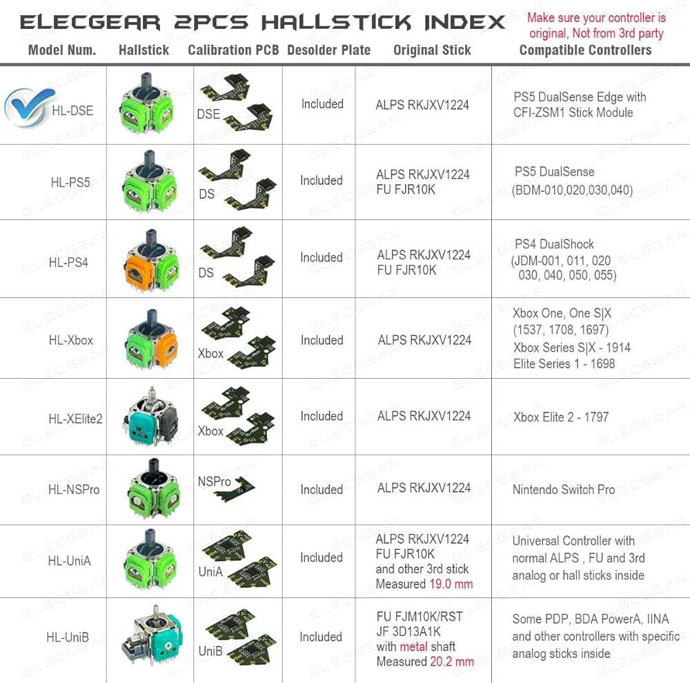 ElecGear Hall Joystick Kit Replacement for DualSense Edge PS5 Controller, 2x Hall Effect Control Stick + 2x Calibration PCB + Desoldering Repair Tools for Analog Stick Thumbsticks – HL-DSE