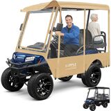 High-Quality, Durable Material: Premium tight weave golf cart driving enclosure made of 300D Oxford cloth PVC coated, ensures durability and longevity. The double-stitched seams and superior nylon zippers, easily pull down the zipper to open or close the side door