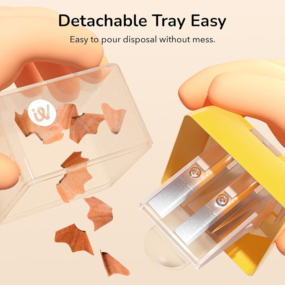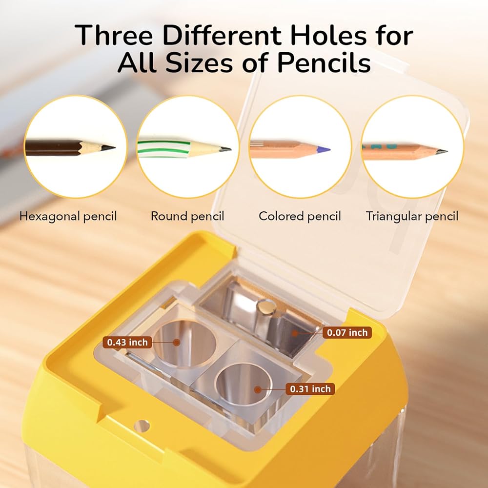 【Easy to clean】A clear shavings box allows for easy visibility to monitor the sharpening process, and its compact design makes it conveniently portable for use anywhere.