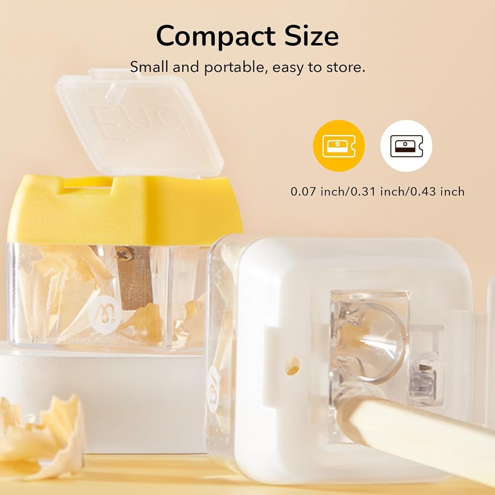 【Three Hole Design】Mideer pencil sharpeners offers a trio of sharpening options for standard 2mm, 8mm, and 11mm pencils. can be used to sharpen pencils of different thickness. Suitable for sharpening large and small diameter pencils and crayons.