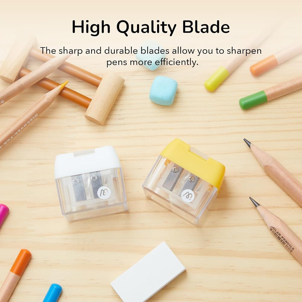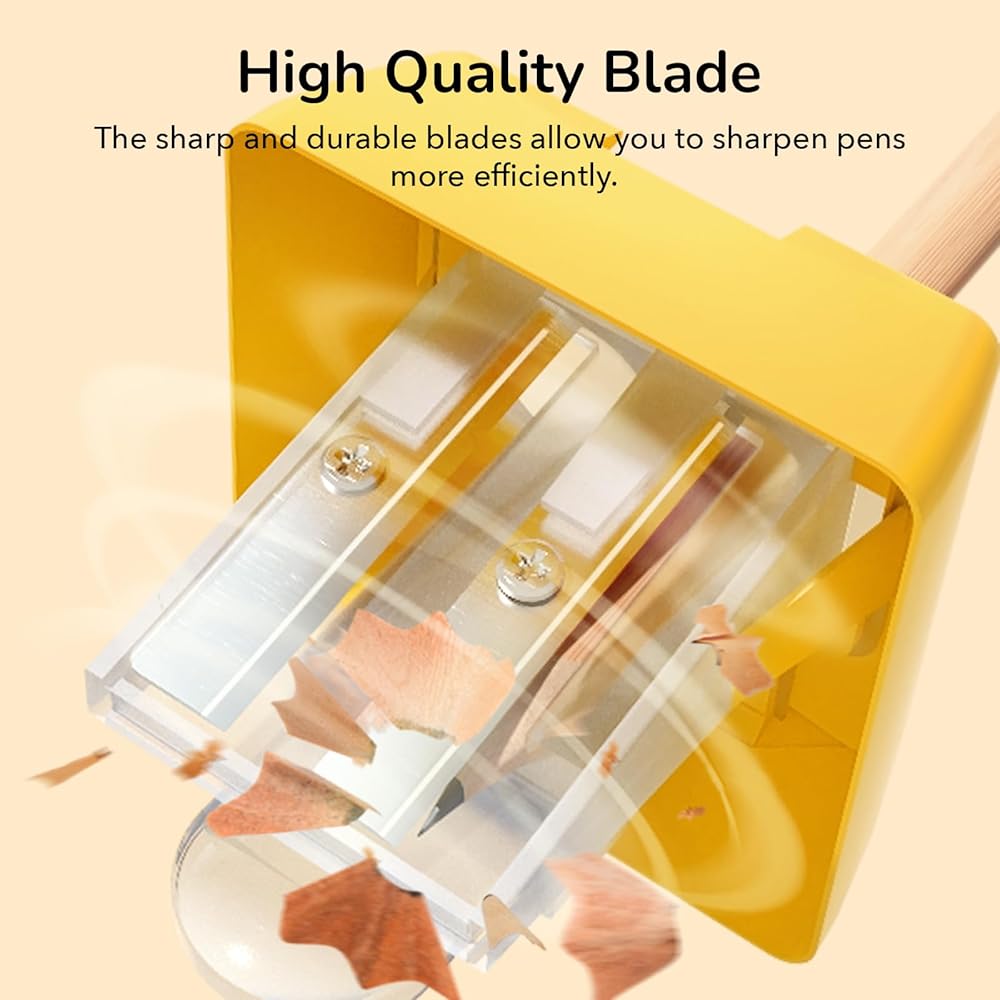 【High Quality Material】This versatile sharpener features high-quality alloy blades that are both sharp and durable, ensuring a smooth, clean cut every time. Not easy to rust, non-toxic and tasteless, will not hurt the child's hands, can be used with confidence.