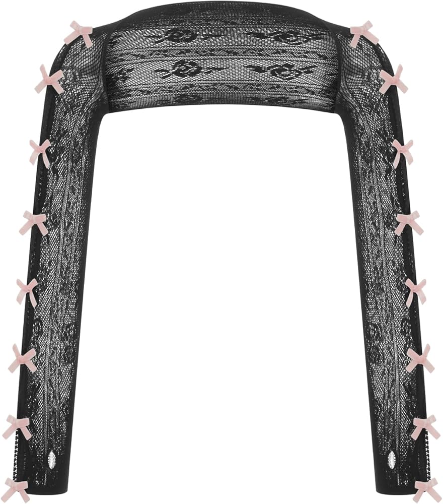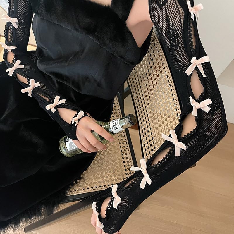 Package:1 pair of gothic lolita gloves. 90s e girl lace mesh bolero is Ideal gift for Y2K fashion enthusiasts and cosplay lovers. 90s e-girl hollow out sleeves is functional and fashionable.