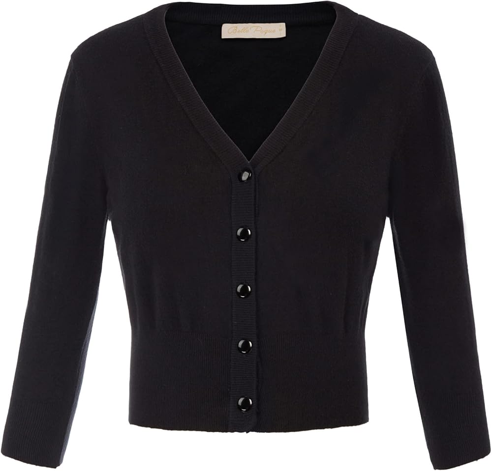 Belle Poque Women's 3/4 Sleeve Cropped Cardigan Shrugs Button Down Sweater