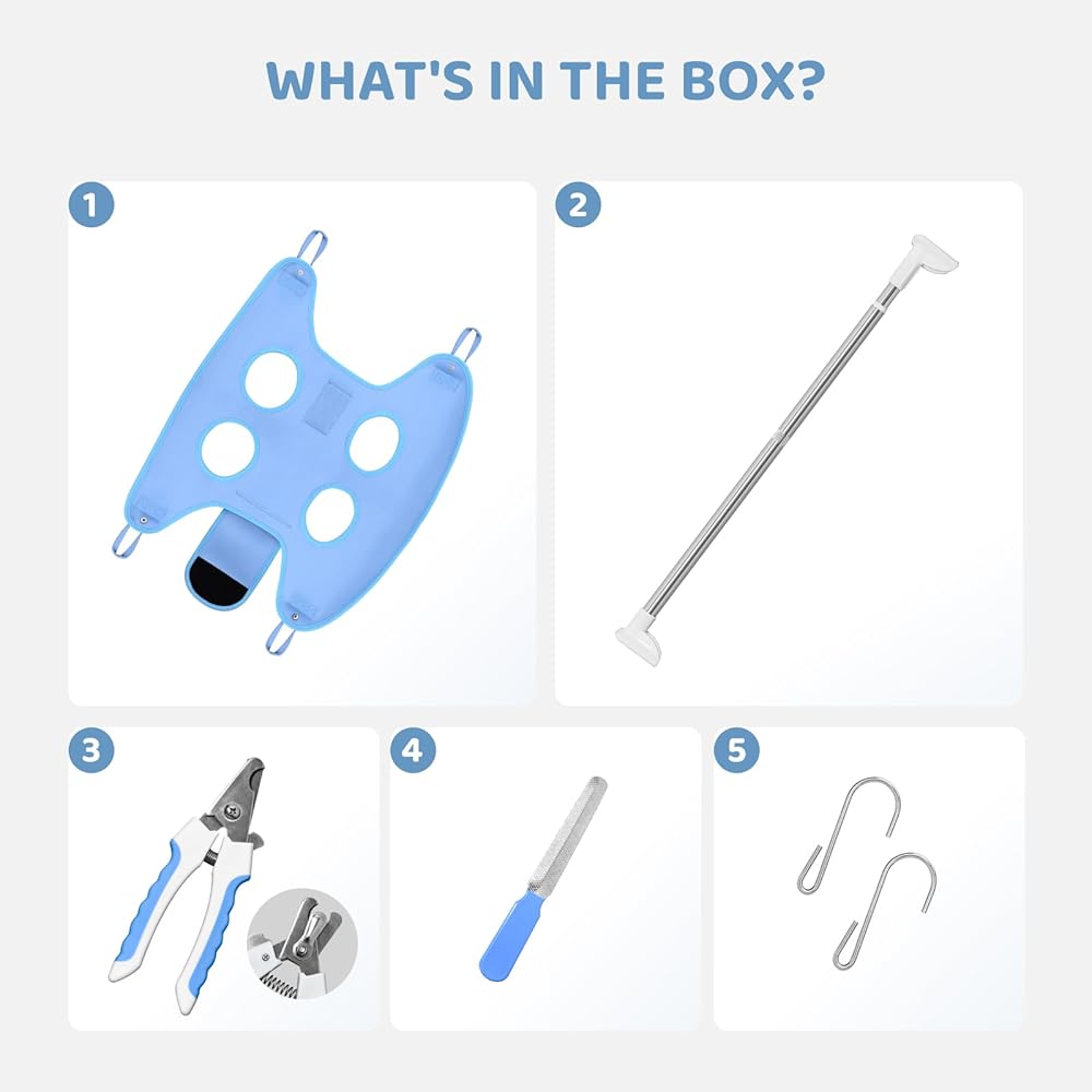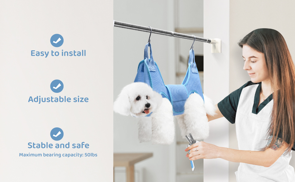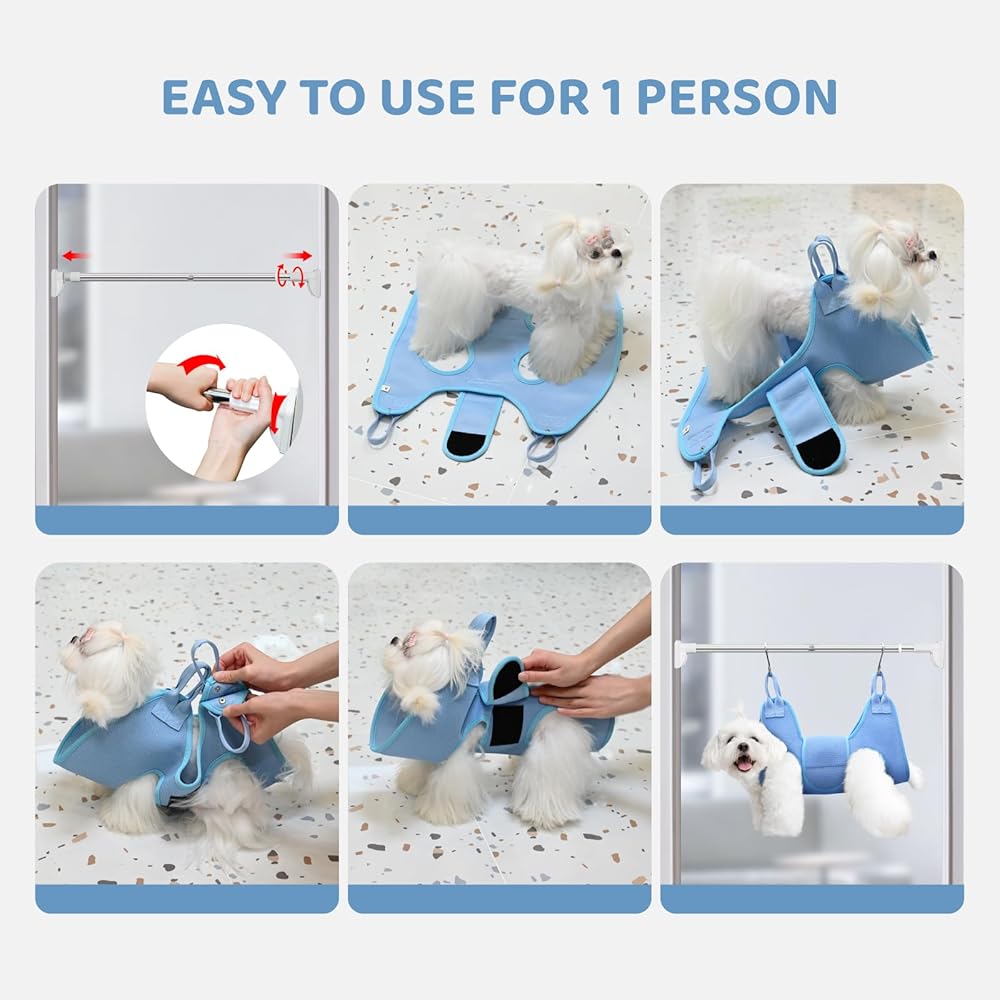 【PET HAMMOCK FOR GROOMING】: Dog grooming hammock helps you easier accomplish grooming your cute pet at home such as trimming nails, grooming, bathing, eye & ear health care, injections, checking various body indicators, etc. Your pet will be kept clean, comfortable and relaxed.
