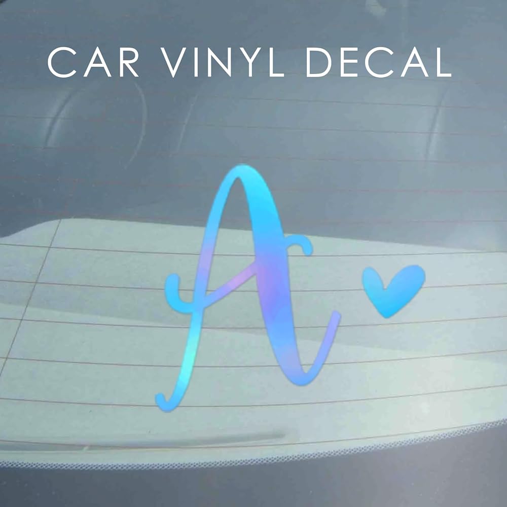 Set of 3 Single Letter Decal, Letter with Heart, Tumbler Decal, Monogram Vinyl Decal, Single Letter Monogram, Holographic Initials Decal, Car Decal, Cup Vinyl Sticker (A + Heart)