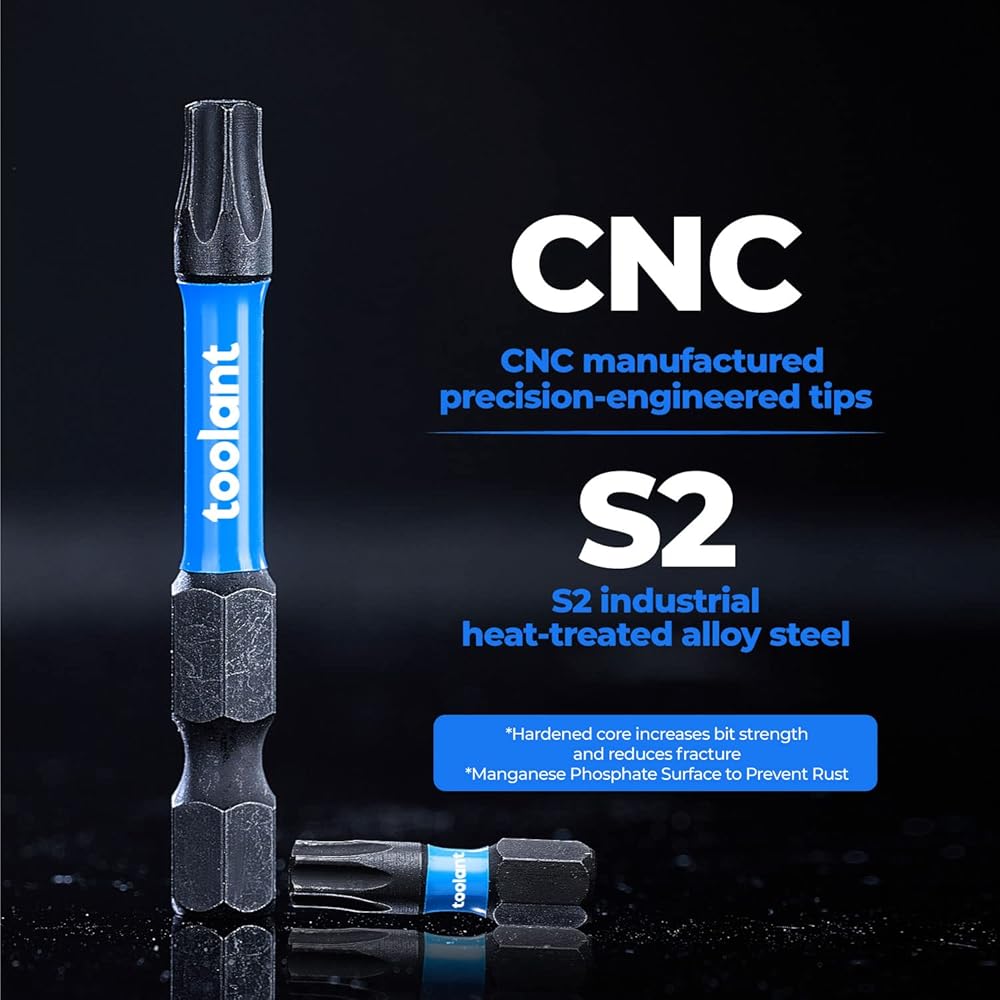 - CNC machined tips, S2 alloy steel body, hardened core to increase bit strength and reduce fracture. Manganese Phosphate surface to prevent rust.