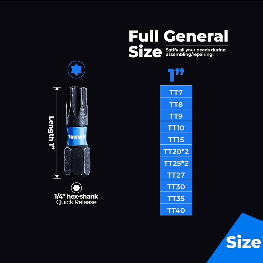 Toolant 1' Impact Torx Bits 50 Pack (T15), 1/4' Hex-Shank S2 Steel Screwdriving Star Bits, CNC Machined Tips, with Storage Box