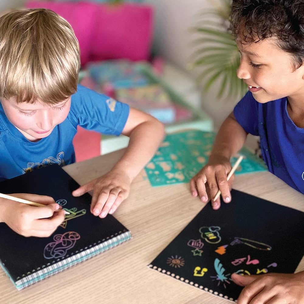 COMPLETE ON-THE-GO SET: Spiral bound with a handy zip-lock bag for the wooden stylus scratchers, this complete set has everything you need for on-the-go. Let's go, and discover the artist in you!