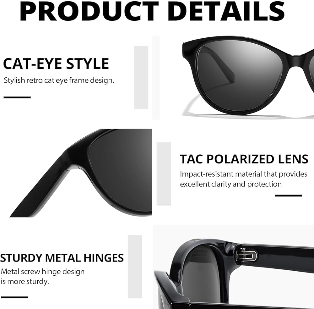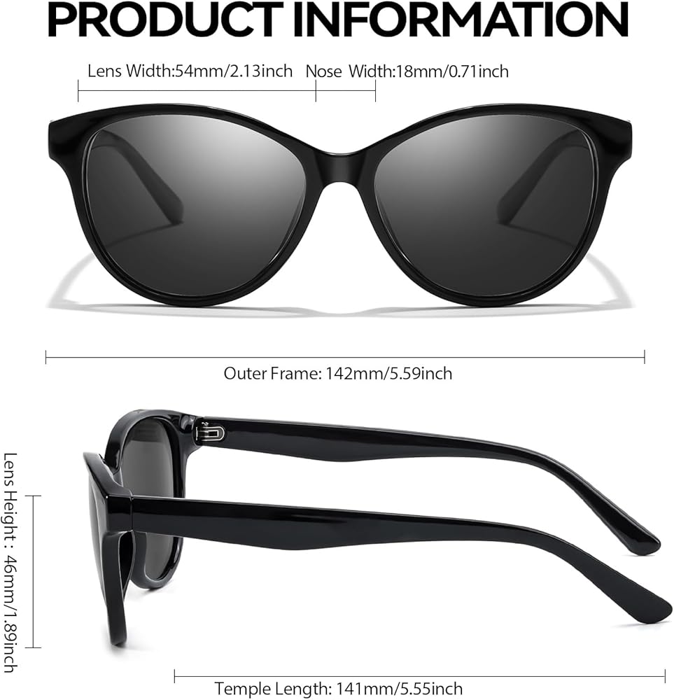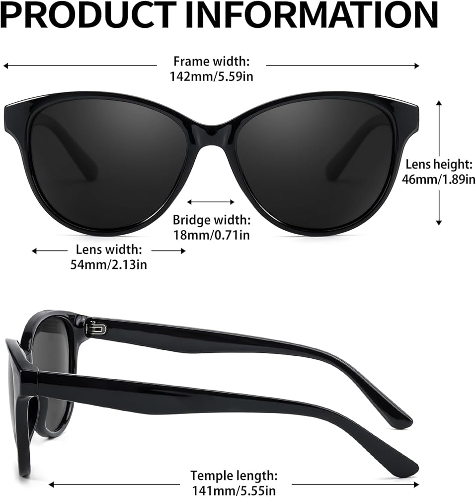 Women's Polarized Sunglasses: Experience crystal-clear vision with our polarized lenses with UV400 protection, which effectively filter out glare-causing, polarized light, allowing only vertically polarized light to pass through. Perfect for activities like fishing, boating, skiing, and driving.