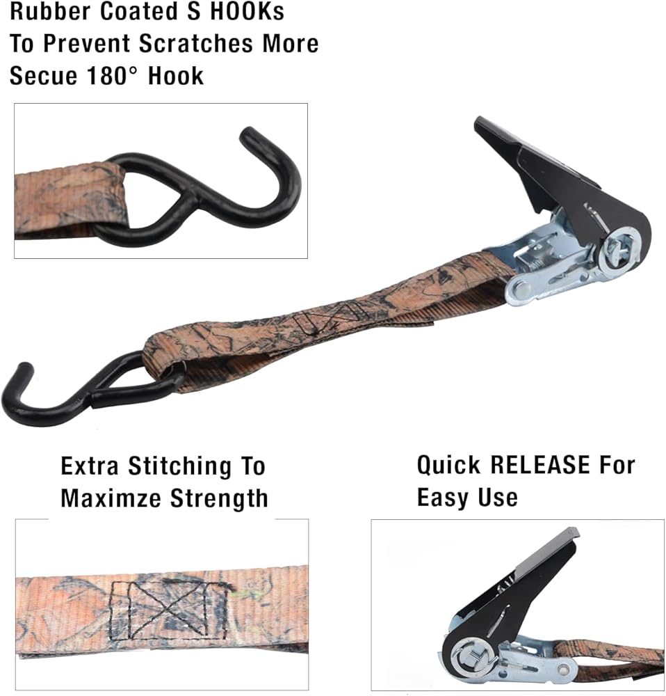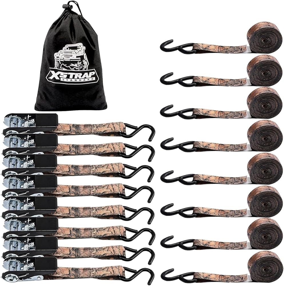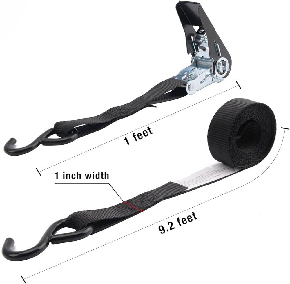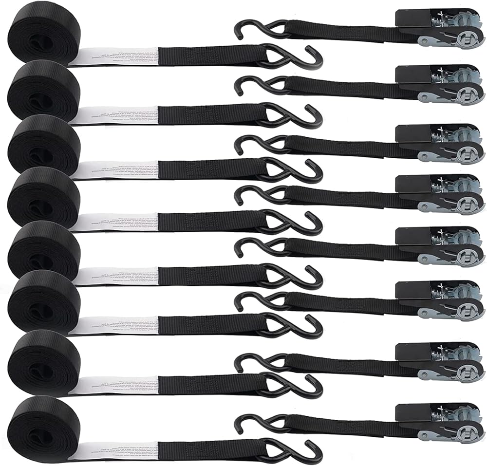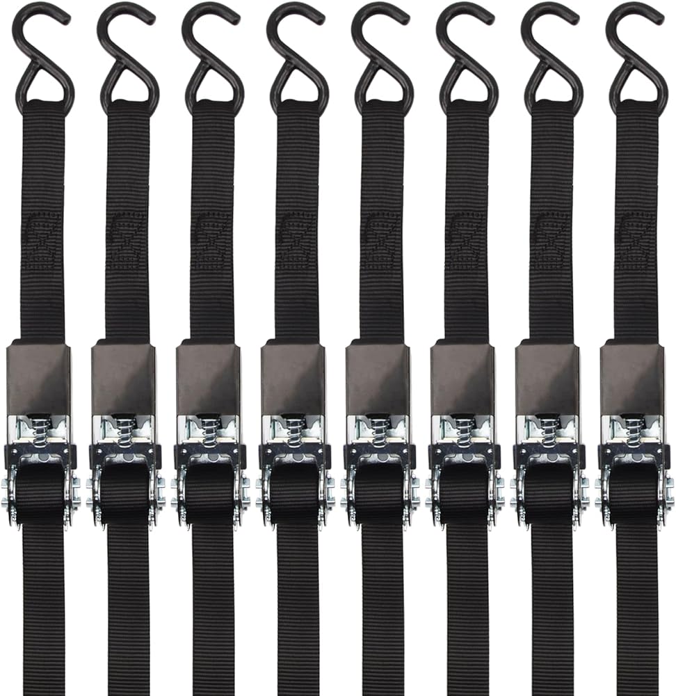 HIGH-QUALITY RATCHET TIE DOWN - 8PK 300 Lbs Working Load Limit, 900 Lbs Break Strength; Useful for motorcycles, ATVs, scooters, sports bikes, vehicles, trucks, and other cargo.
