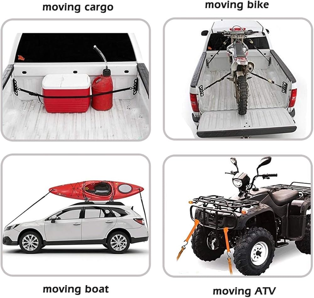 CONVENIENT & RELIABLE – 10 Ft straps can securely hold big or small loads! Perfect for securing large items or appliances on a boat, motorcycle, cargo trailer, pickup truck bed, or on a car roof rack when moving or camping. Free with a drawstring bag.