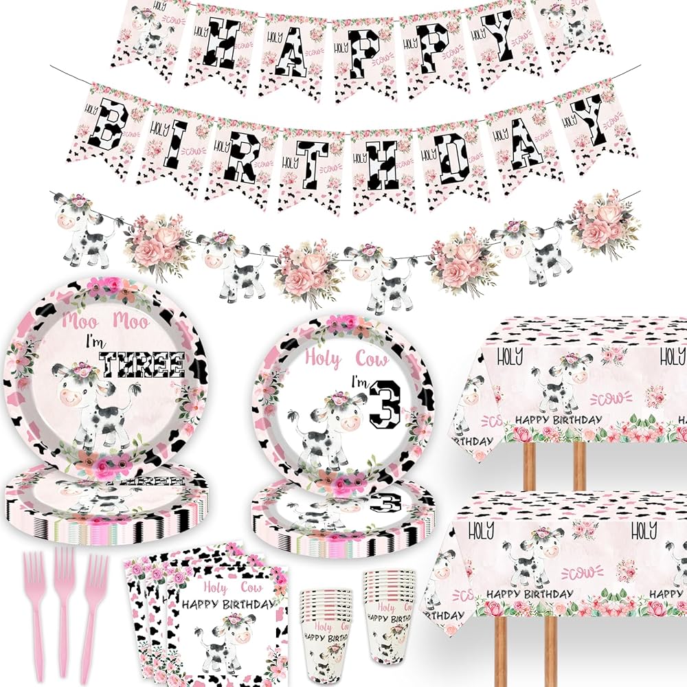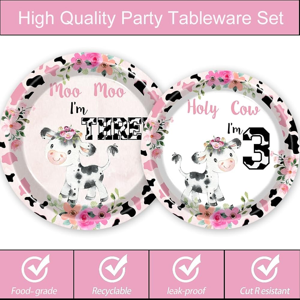 Holy cow girls 2nd birthday party tableware is great to decorate farm animals 2nd birthday party, holy cow two years old party, Girls 2nd birthday party, Moo Moo I'm Two party, etc.