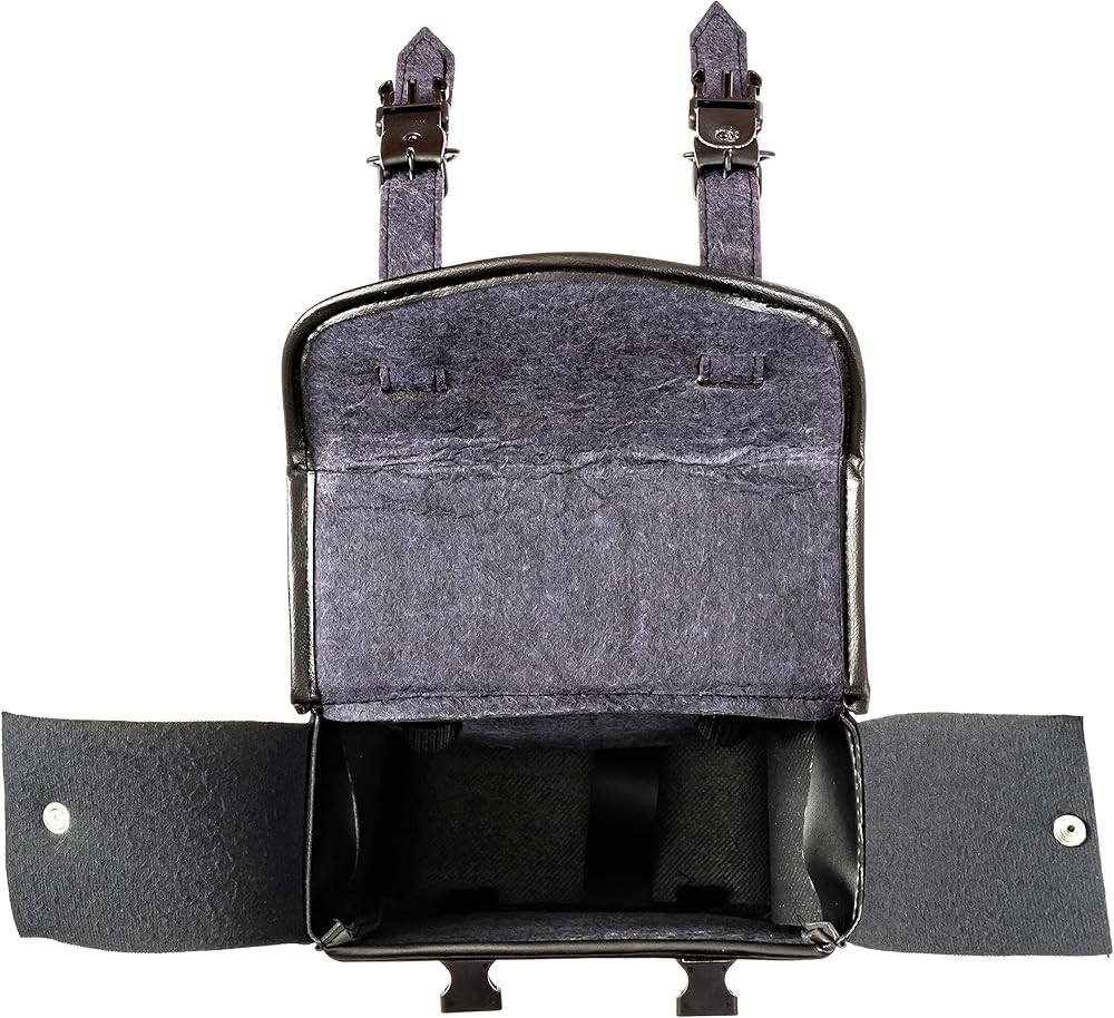 These PREMIUM Sissy Bar bags have all the features you will ever need. They will instantly add handy storage for small items. They are constructed of 3 layers of heavy stock and - Fully Finished Inside with Felt and single layer With Snap closing flaps on both sides. Keeps your stuff IN and Weather OUT With piping added all around. Easy Access with 2 Quick Release Clasp and Black Buckles . Straps to the Sissy Bar with a 3 Point system: A 1.5 inch wide Belt over 2' long with Velcro provide Infinite adjustment. Add the 2 Nylon web straps That are 1'' wide with Double ''D'' rings and it STAYS PUT. NO MORE SAGGY BAGS!