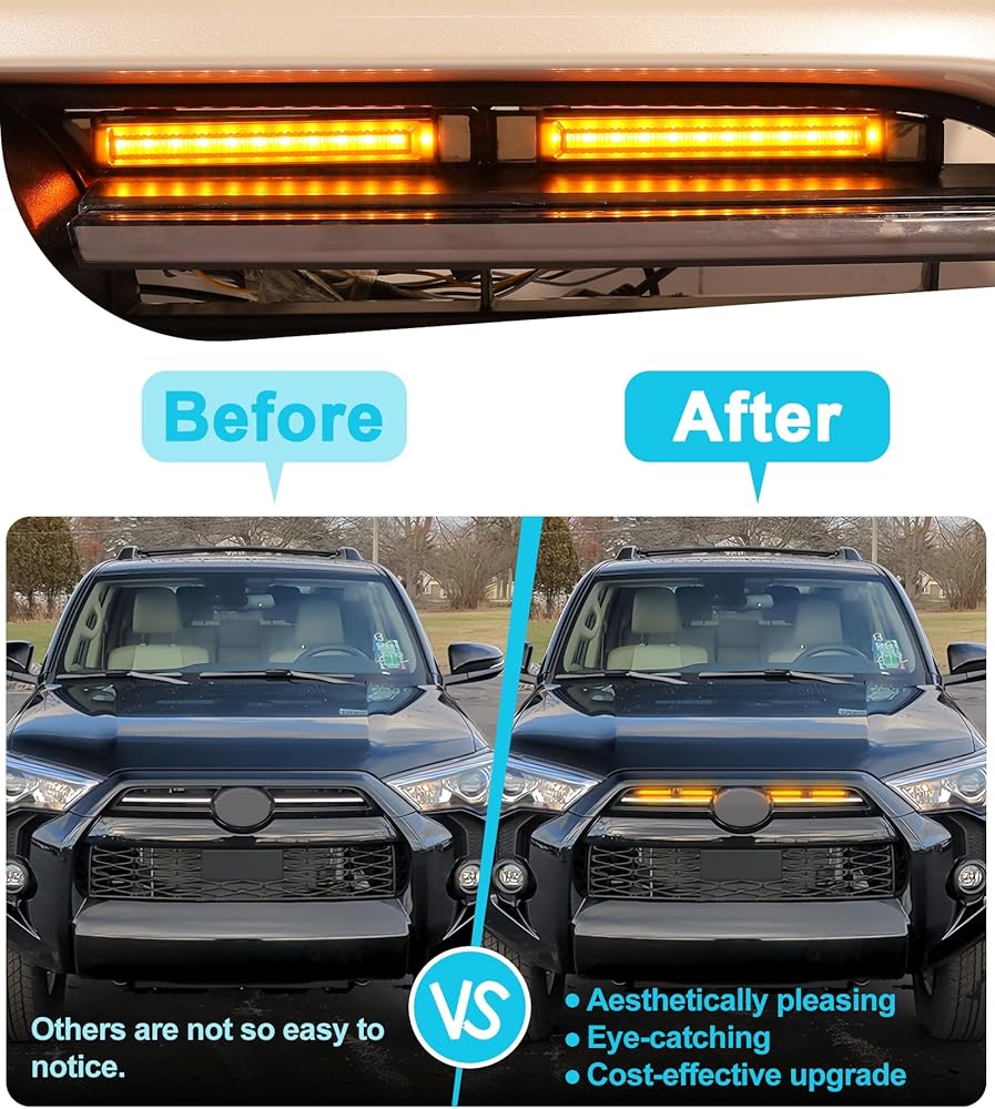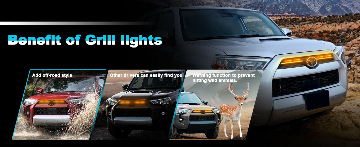 [IP68 Waterproof] - The 4Runner grill lights has been tested to be seal enough, so it's waterproof enough that you don't have to worry about it suddenly not working in bad weather!