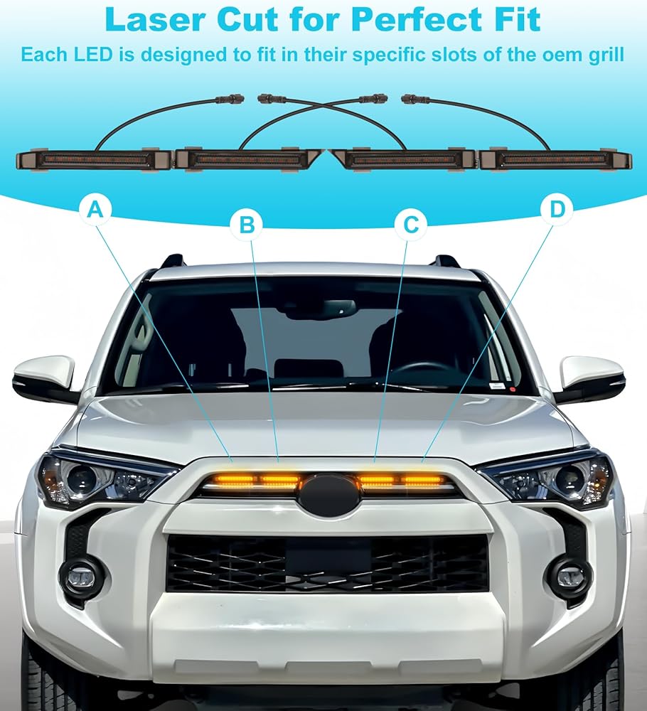 [4Runner Front Grill Lights] - Each LED is designed to fit in their specific slots of the OEM grill, secured by clips of the grille light housing. Light up & Add style to your grill.