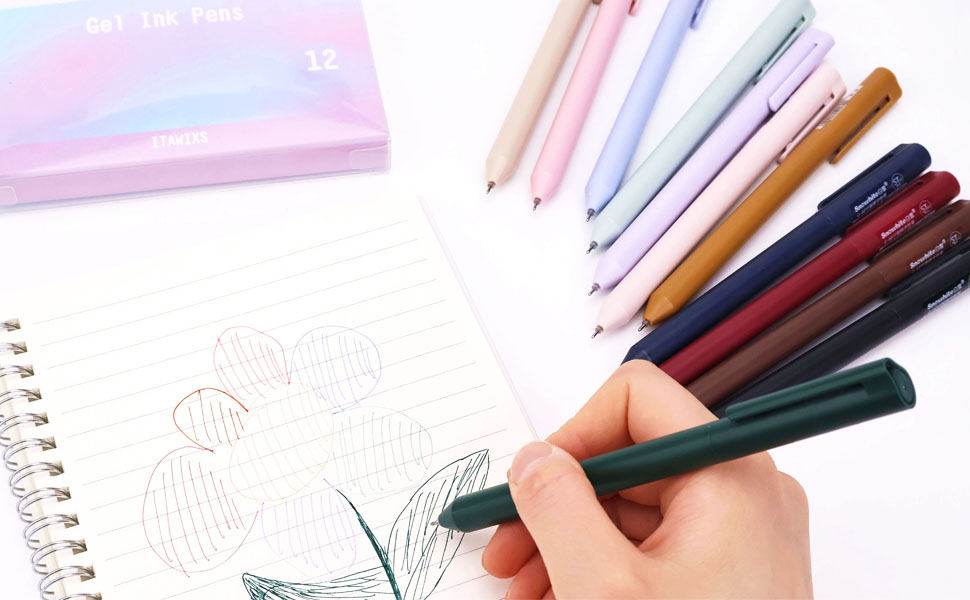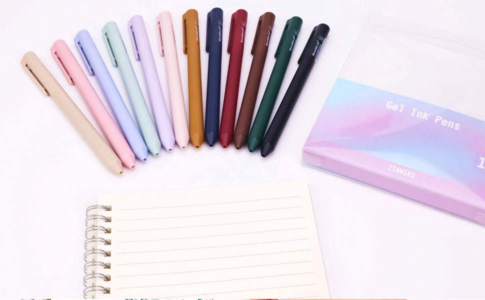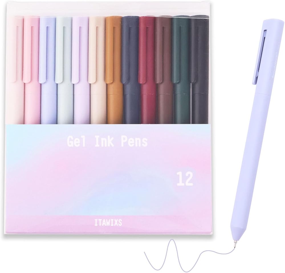 ITAWIXS 12Pcs Aesthetic Gel Pens,0.5mm Retractable Fine Point Pens,Assorted Colors,Smooth Writing,Fast Dry,Comfortable Grip,Cute Pens for Journaling Note Taking