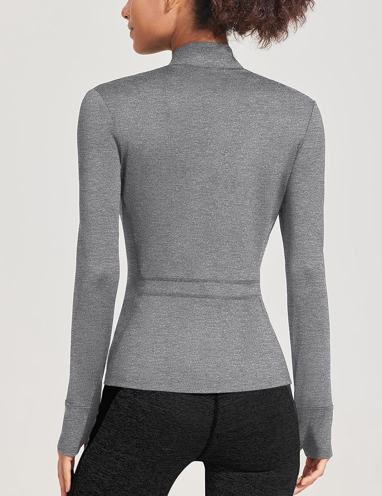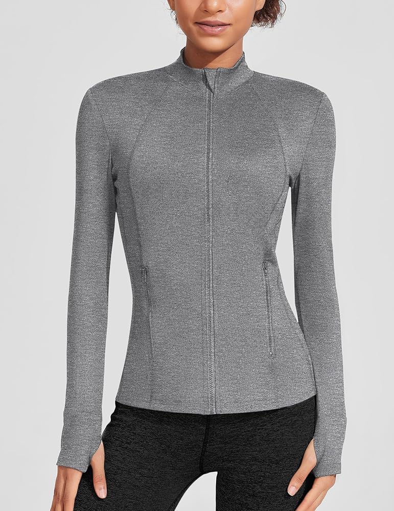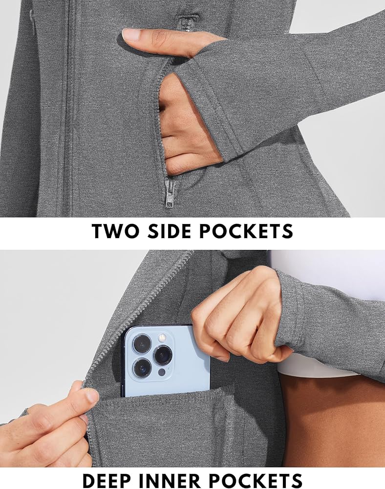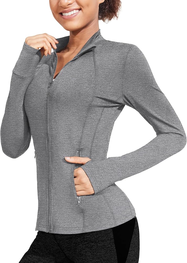 COOrun Workout Jackets Women Lightweight Long Sleeve Shirts Thumb Holes Running Jacket Full Zip Athletic Jackets with Pockets