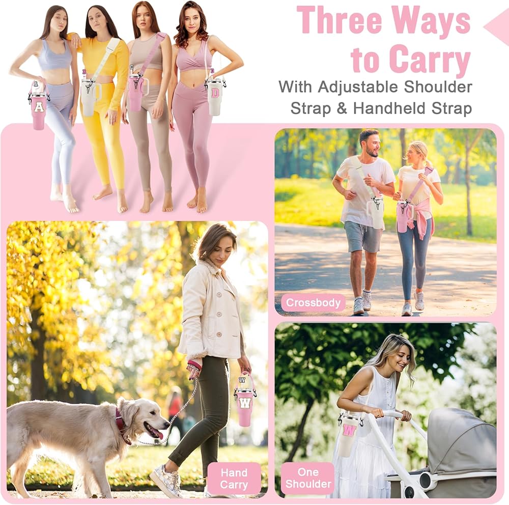💕【Wide Usage & Perfect Gift】Personalized A-Z initials water bottle holder can be used in a variety of situations where you want to carry your Stanley water bottles, such as walking, biking, hiking, school, commuting, beach, gym, or sporting events. With initial letter charm holder bag design makes it suitable for various sports and outdoor activities. Definitely an ideal gift for yourself, your family, and your friends. And the water bottle holder with strap is a perfect gift for Stanley fans.