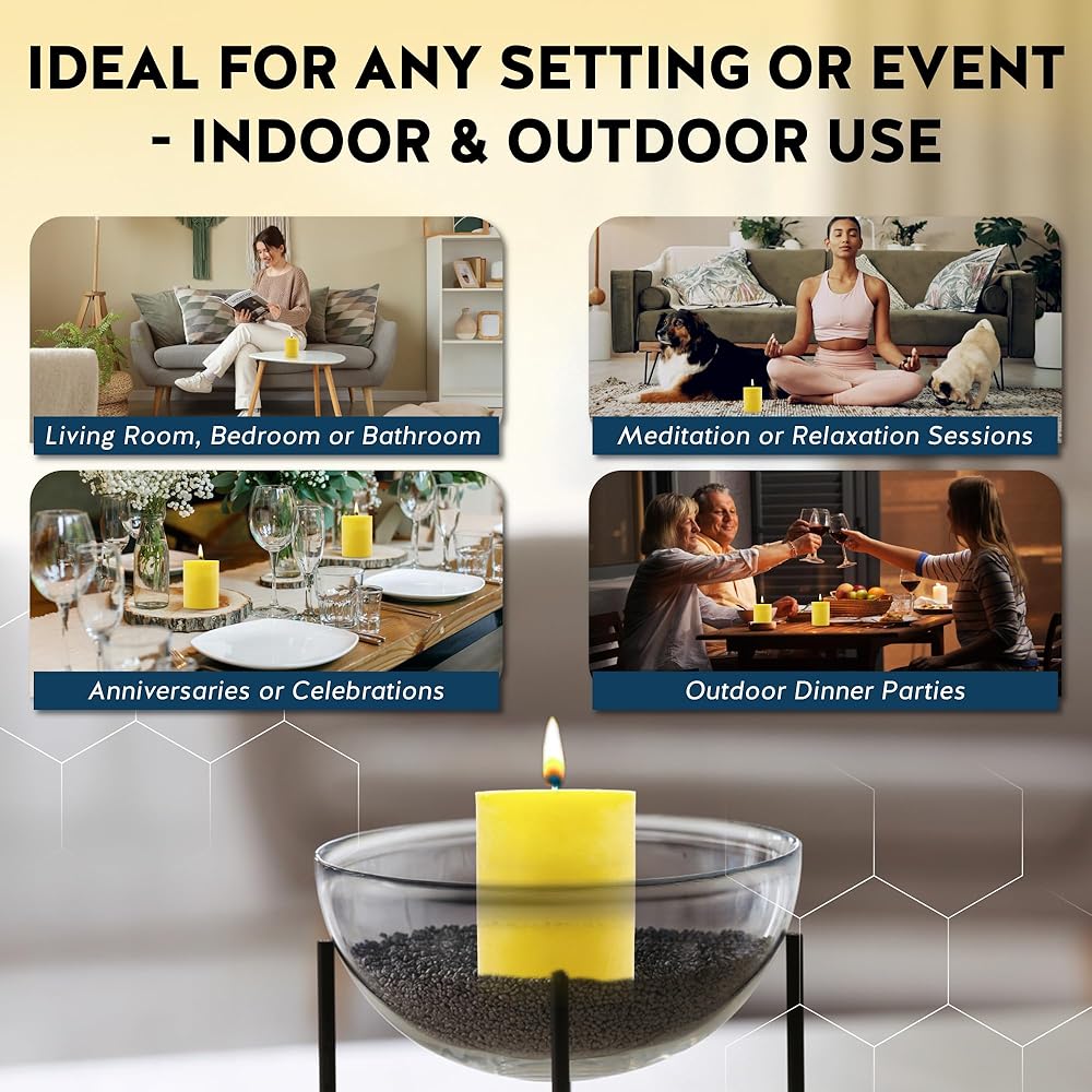 100% BEESWAX CANDLE: Our pillar wax is completely non-toxic, safe to store around your family and pets when they are not in use. Bee candle wax burns clean and sweet without added scents, improving the quality of air in your home. Each mold is expertly filled with natural, non toxic beeswax and set with a 100% cotton wick. The threaded and pure cotton wicks are untreated, so you have only the organic, warm smell without any residue.