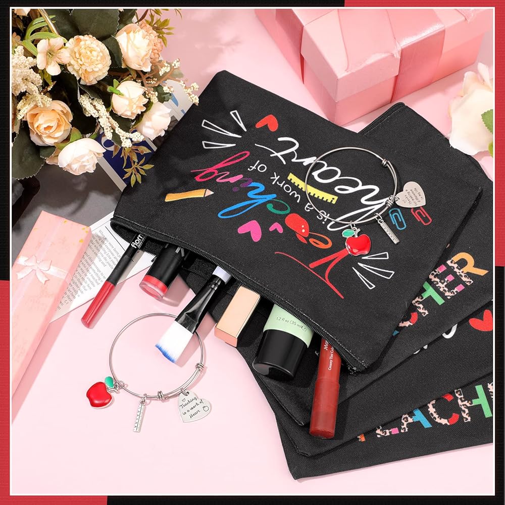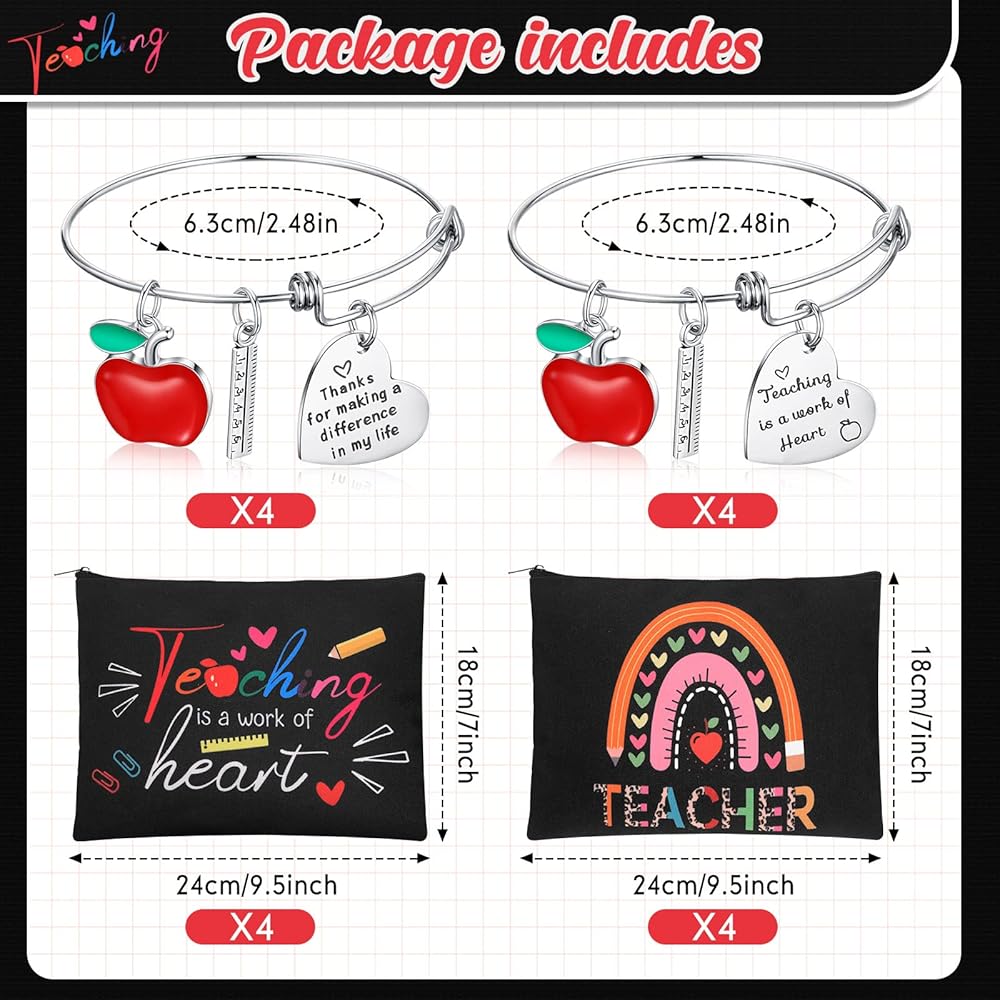 Nice combination: these teacher appreciation gifts include 8 pieces of teachers cosmetic bags and 8 pieces of teacher bracelets carved with warmhearted words, cute and thoughtful combinations can meet your gifting needs, you can send to your dear teachers of different subjects