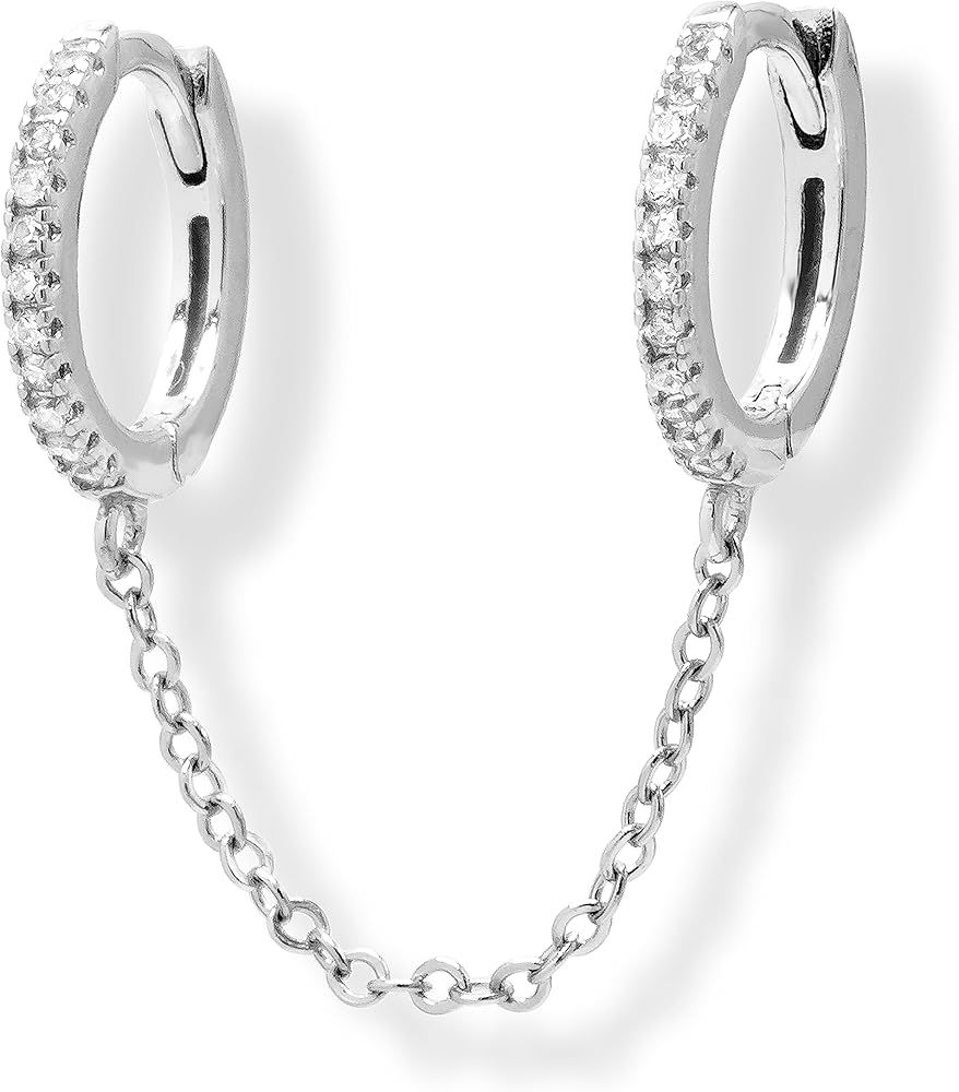Spice up your look with Adina Eden's CZ Double Chain Earring, featuring two chic huggies set with brilliant pavé CZ stones and a connecting chain. Rock this gem as the statement piece in an eye-catching stacked hoop look on your next night out.
