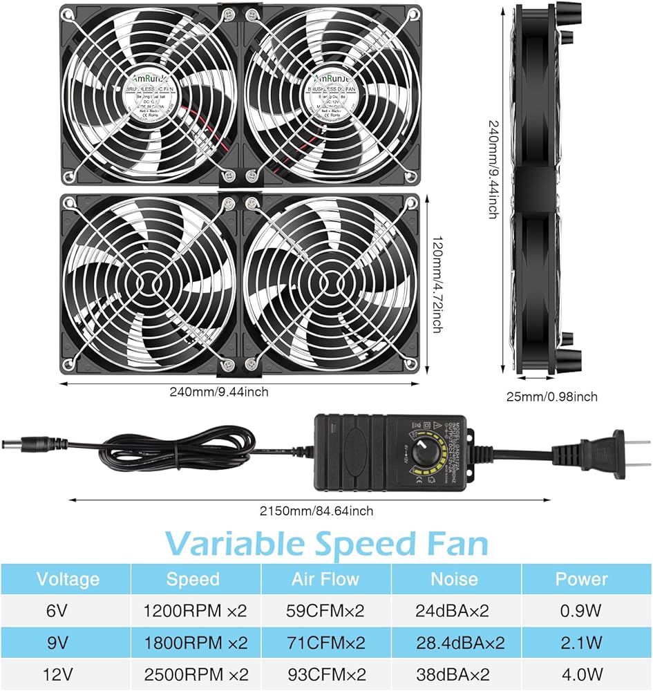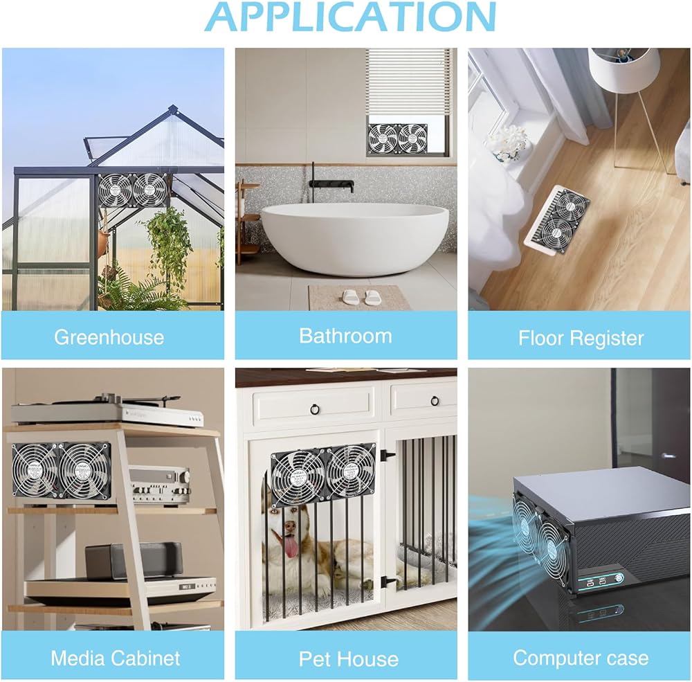 【Customize Your Cooling】 for TVs, a 2 x 240mm fan for routers, server workstations and closets, or use separately ( two fans can be 2.8ft from each other).