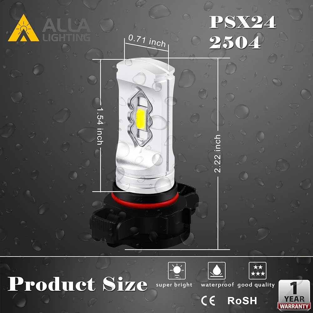 Powered by Advanced Bright LED Circuitry Technology;Used for upgrading stock halogen / incandescent / HID PSX24W 2504 fog light lamp replacement
