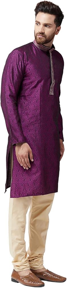 - Style: Kurta & Churidaar Pyjama SET, Fabric: Silk Blend (80% Silk, 20% Cotton)