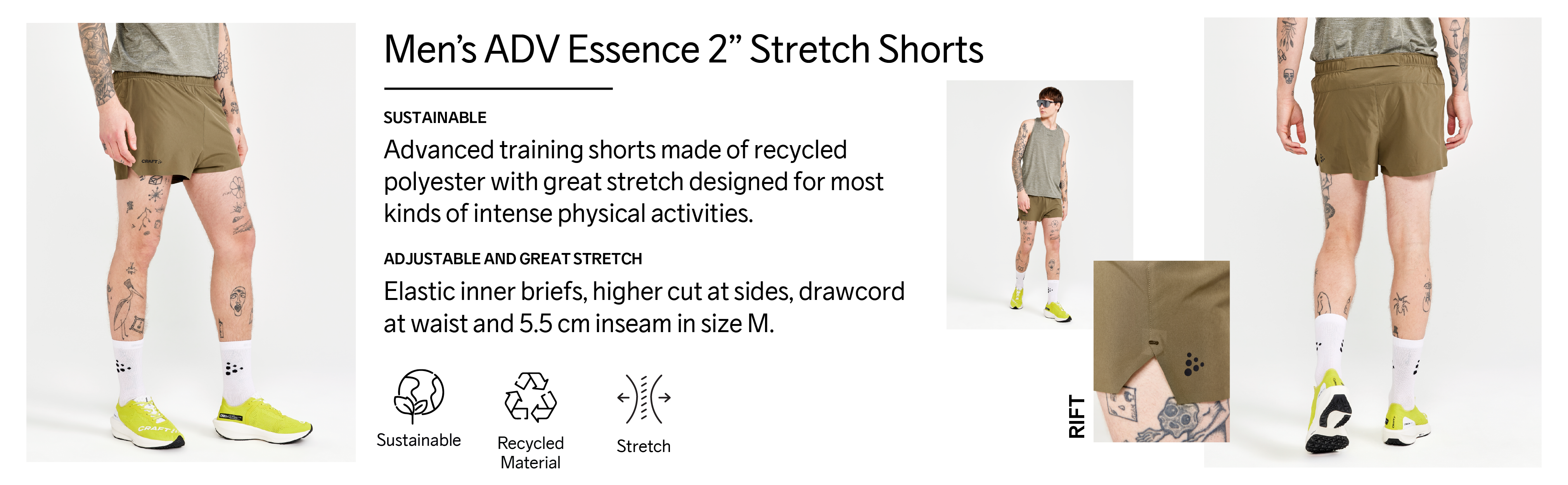 RECYCLED POLYESTER FOR SUSTAINABILITY: We've worked hard to increase the proportion of sustainable materials in our performance sportswear; This short is made of recycled polyester with a great stretch, so you can feel good about your purchase.