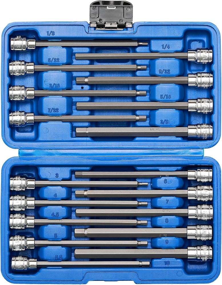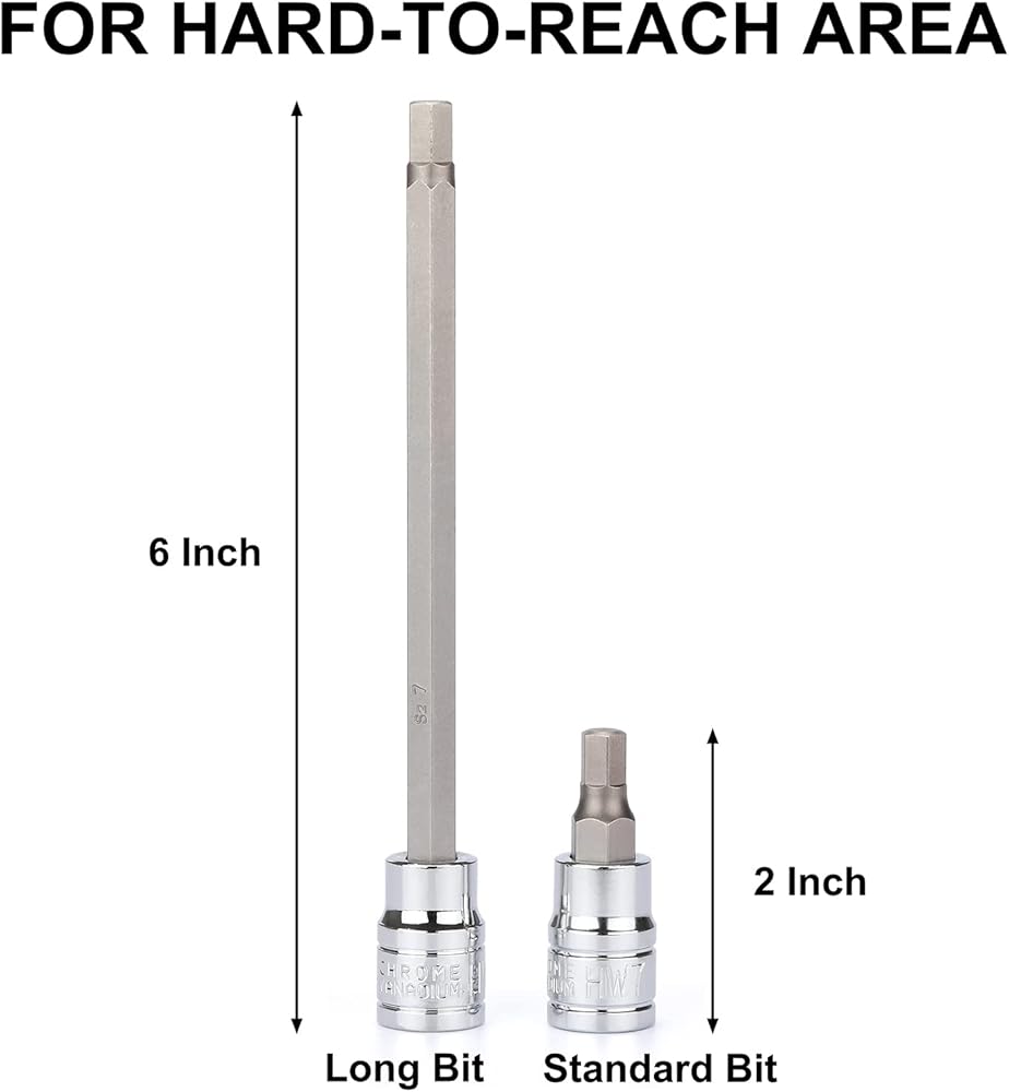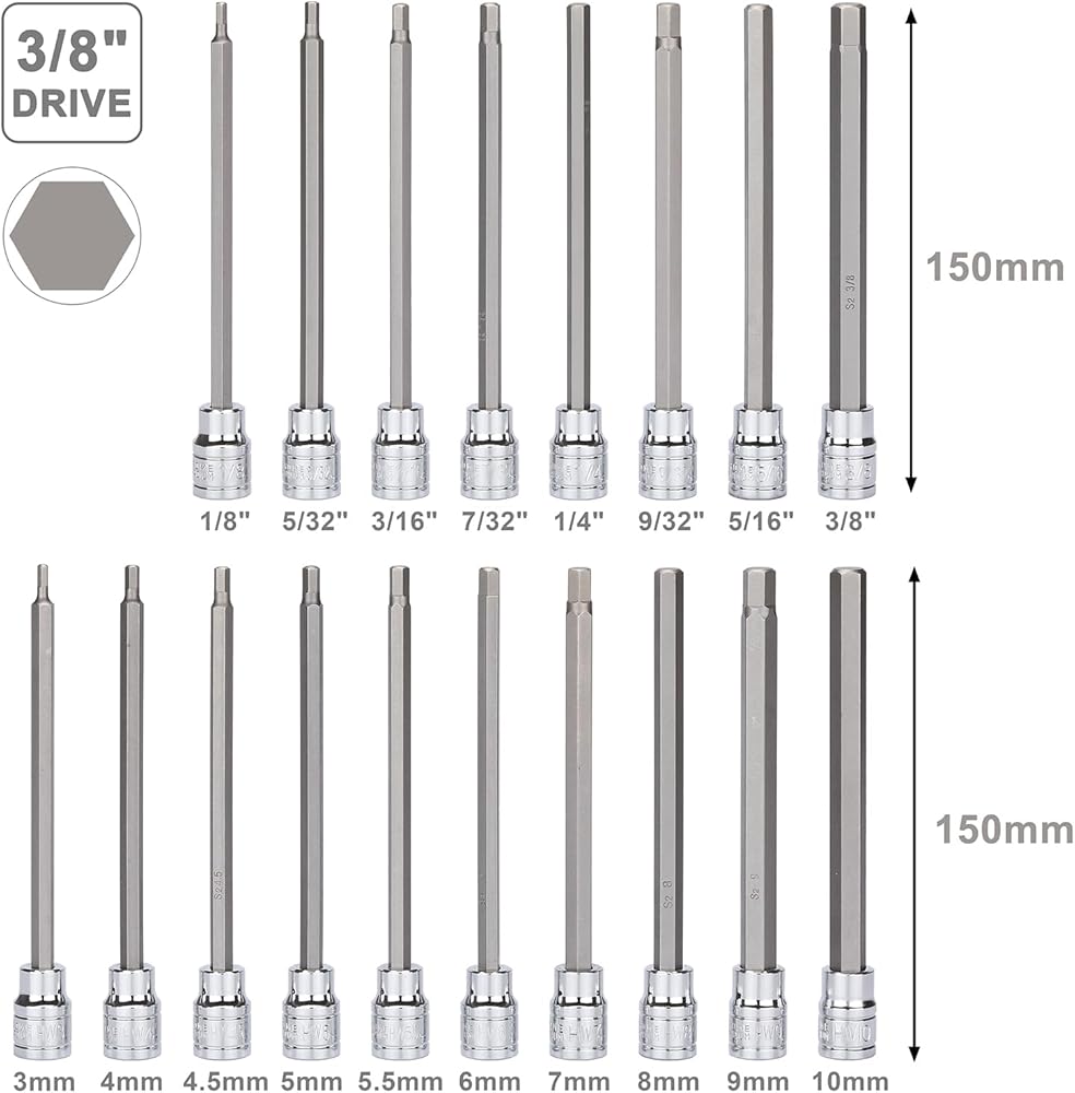 - Includes: 12pcs 3/8"drive long torx bit sockets: T10, T15, T20, T25, T27, T30, T40, T45, T47, T50, T55, T60. Length: 150mm.
