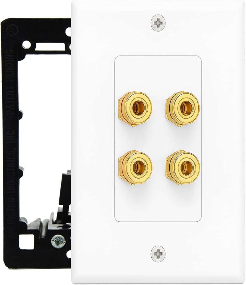 Upgrade your home theater setup with the DIYTECH Speaker Wall Plate. This 7.home theater wall plate allows you to easily connect your speakers, subwoofers, and other audio devices for a seamless entertainment experience. The gold plated binding posts provide a secure and reliable connection, ensuring optimal sound quality for all your favorite movies and music. Featuring RCA wall plates, this speaker wall plate is perfect for connecting your audio sources with ease. The wall mount ethernet jack allows for convenient connection to your home network, while the speaker wall jack provides a clean and professional look for your home theater setup. With easy installation and a durable design, this speaker wall plate is a must-have for any home theater enthusiast. Whether you're setting up a new home theater system or upgrading an existing one, the DIYTECH Speaker Wall Plate is the ideal choice for achieving superior audio connectivity. Don't settle for subpar sound quality - invest in this high-quality home theater wall plate to enjoy an immersive entertainment experience like never before. Say goodbye to messy cables and say hello to the convenience and elegance of the DIYTECH Speaker Wall Plate.