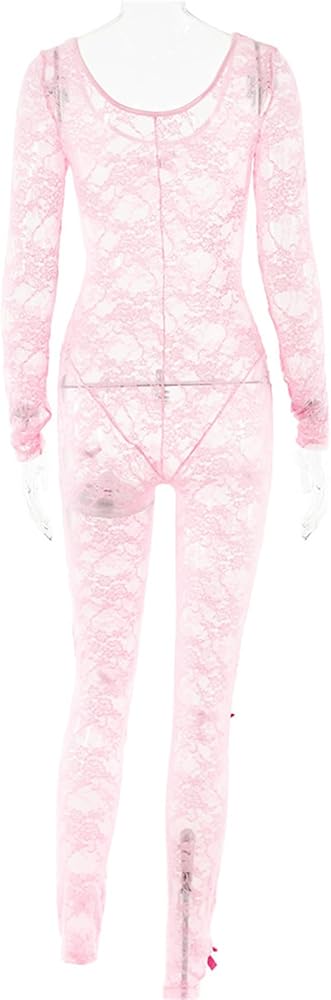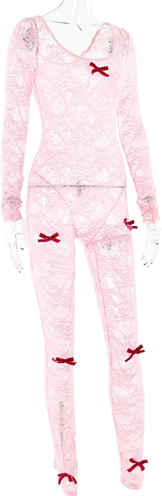 Design:Sheer Mesh /Long Sleeve/See Through Leggings/Deep U Neck/Bow Tie Design /Cute Outfits For Women/Floral Lace Jumpsuits/One Piece Jumpsuits For Women/Bodycon Jumpsuit/ Full Body!