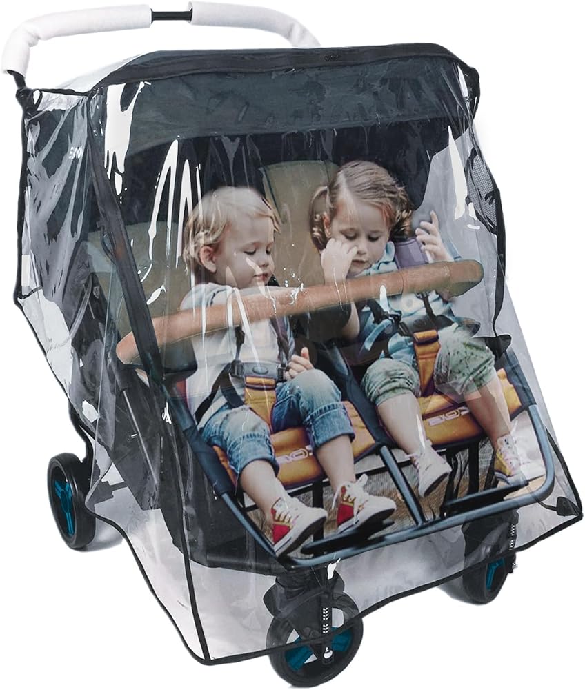 FIT MOST STANDARD-SIZE DOUBLE BABY STROLLERS: Our stroller rain cover is designed to fit most standard-sized double baby strollers, jogging strollers and prams.