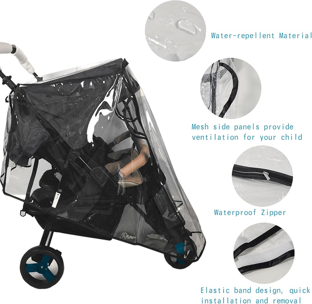 QUICK INSTALLATION: The rain cover both go on easily and remove just as quickly for parent-friendly use.With the see-through large window it is great for baby lift in and out of stroller, no need to remove the rain cover.