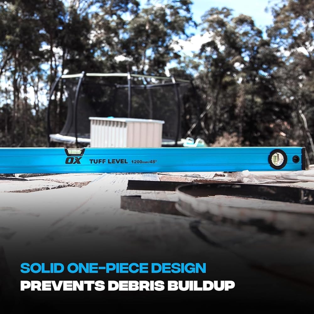 Solid one piece construction prevents dirt or debris from collecting on the frame of the level. Anti friction paints prevents mud or concrete from sticking to the level.