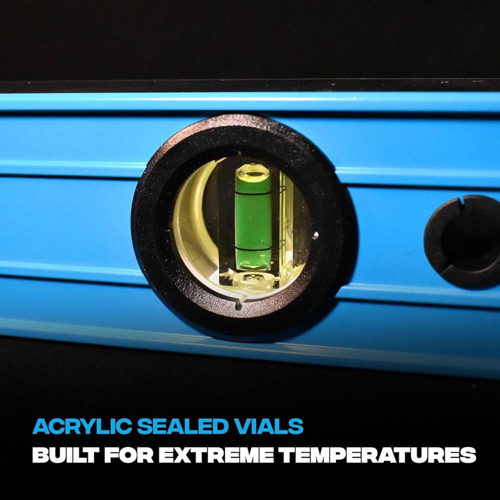Acrylic Sealed Vials: Features acrylic sealed vials for durability and accurate readings and accuracy of 0.0005" over 1". Vials designed to withstand heat and cold temperatures and remain accurate.