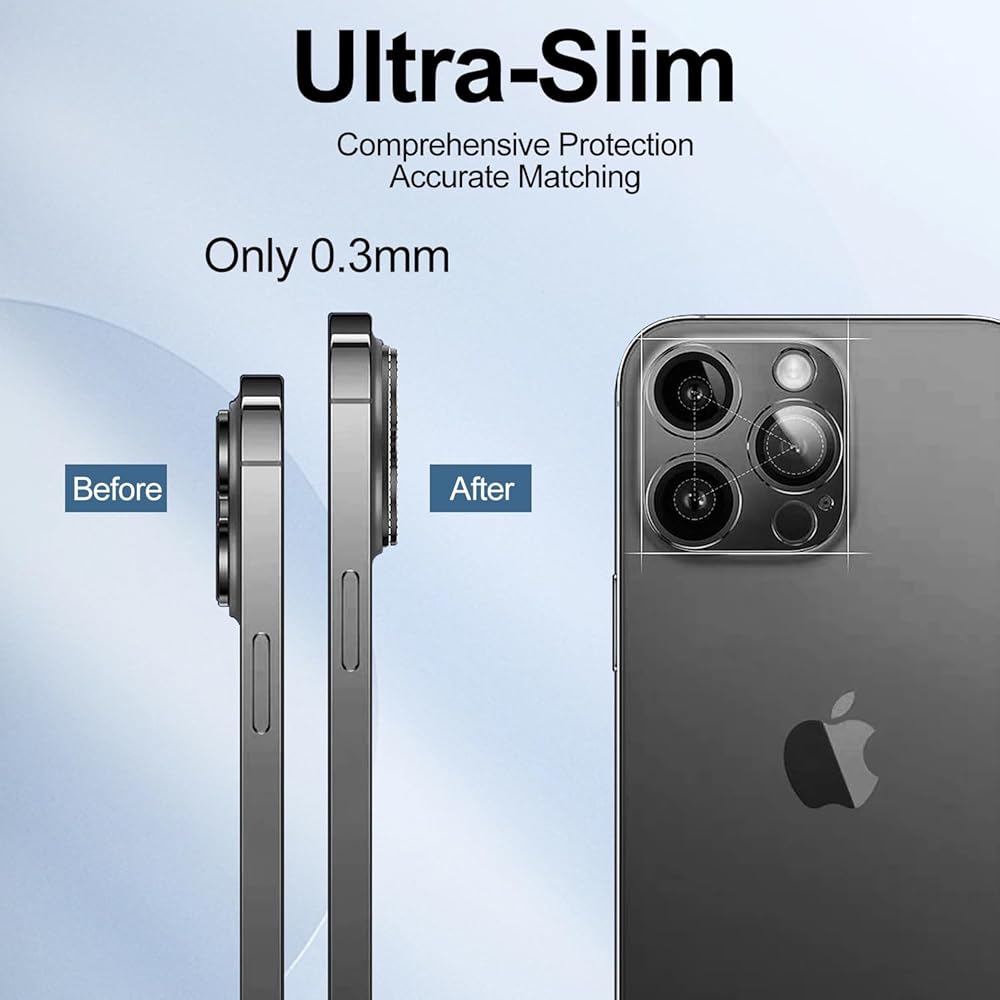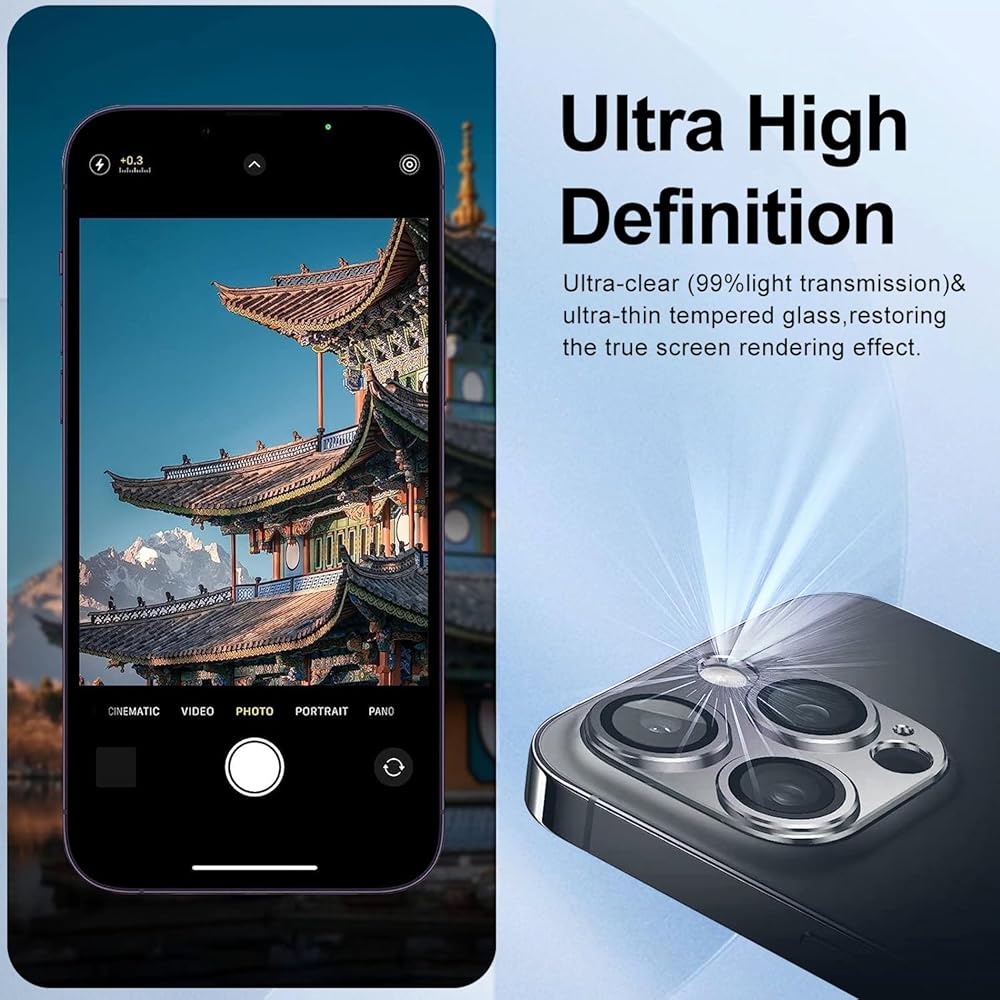 Full coverage drops protection anti-scratch, shockproof. The aviation aluminum metal ring and 9H tempered glass camera protector effectively protecting the lens,featuring maximum protection from scratches, scrapes, and bumps.