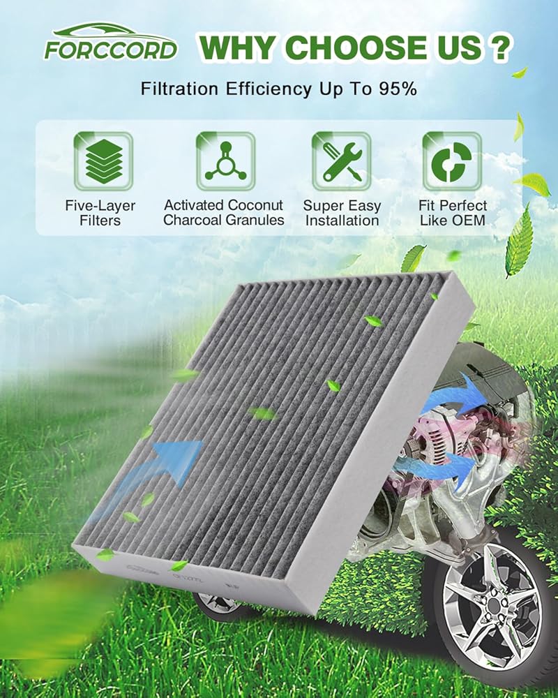 【5 Layers Newly Material】Compare with Standard cabin air filter, we adopts a newly upgraded large-capacity five-layer blue silk filter cloth+melt blown cloth, Double layer HEPA filter,which can remove 99.9% of harmful pollutants(dust, pollen,exhaust, etc).
