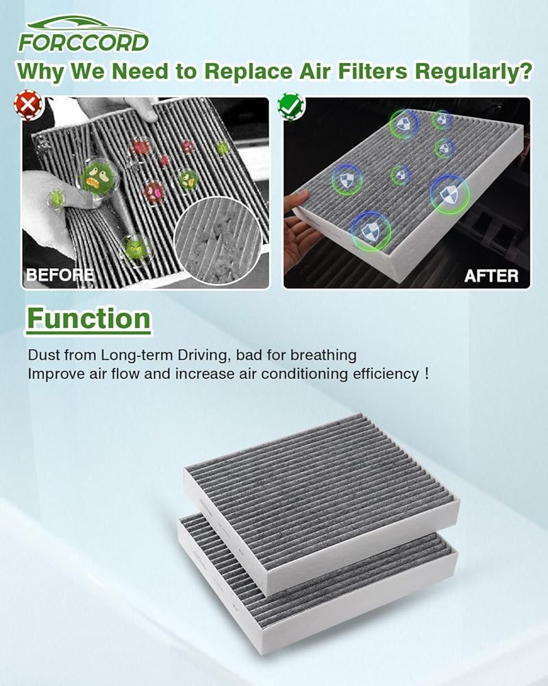 【2 Times Longer Life】Each package comes with two filters and can be used for 1-2 years.Each cabin air filters are engineered to last up to 20,000 miles, 30% longer than the standard performance of 12,000 miles.