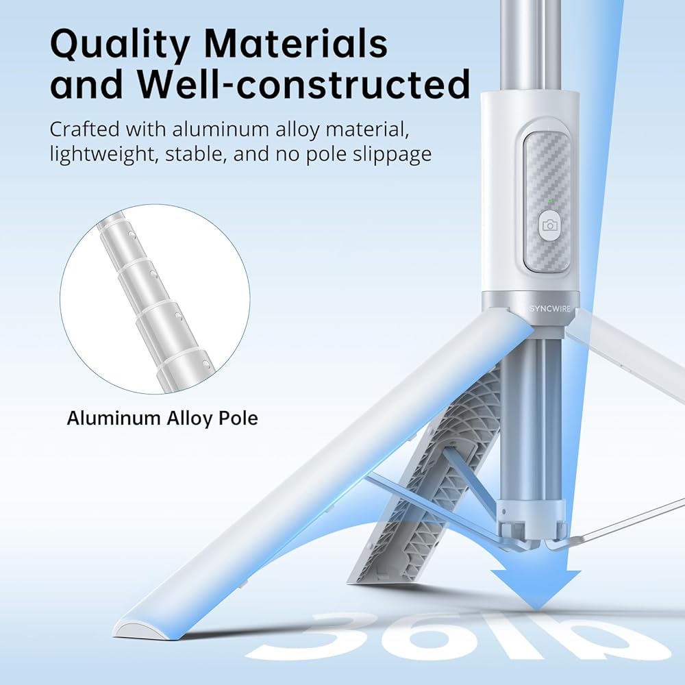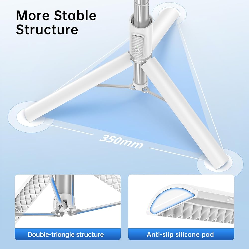 Premium Aluminium Alloy Pole: Aviation-grade aluminum alloy construction ensures durability and longevity. Includes a Bluetooth remote shutter for hands-free operation.
