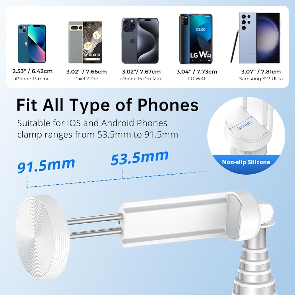 Stable & Large Tripod Base: 10.6'' tripod base with non-slip silicone pads ensures stability and prevents slippage.