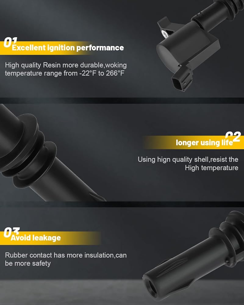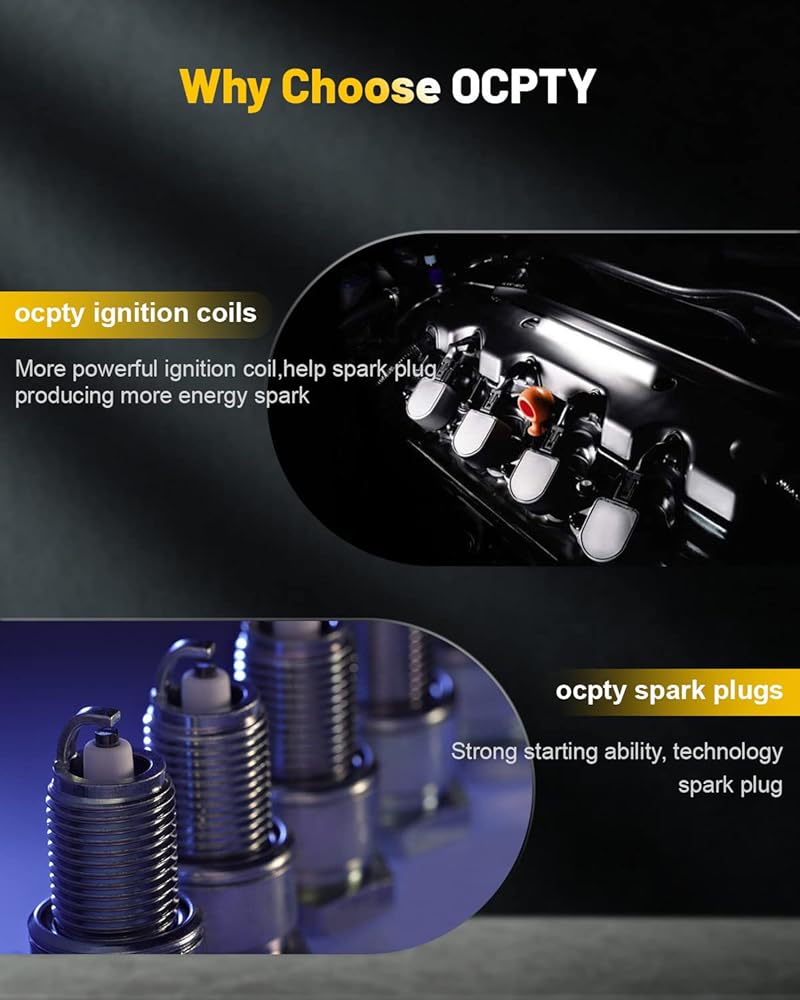 Function & OEM Fit - OCPTY Ignition Coils are engineered for original equipment and replacement applications.Every component either matches or improves on the OE design to ensure fast and easy installation with superior performance and reliability.The ignition coil acts like a transformer.the ignition coil transforms the electrical energy from the vehicle battery into high voltage, saves it briefly and then emits it as a high voltage current pulse to the spark plug.