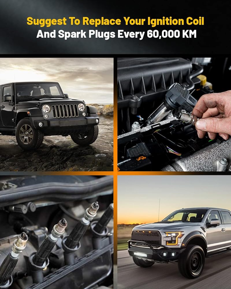 Premium Quality Material - You'll have an easy time mounting these coils due to their lightweight and winding construction. The copper material ensures maximum power delivery to the spark plugs. They come pre-greased for direct replacement.Superior winding process yields greater wire length control, which means less chance of a breakdown of the wire coating and insulation. Material resists pinholes and cracks that can cause failures.