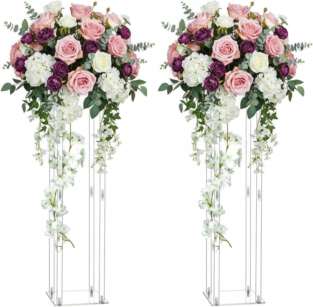 LoveCat 2 Pcs 31.5in Clear Acrylic Vases Wedding Flower Stand Centerpiece, High Column Waypoint Wedding Site Arrangement, Party Table Flower Stand, Wedding Pillars for Wedding Stage Dinner Home Décor