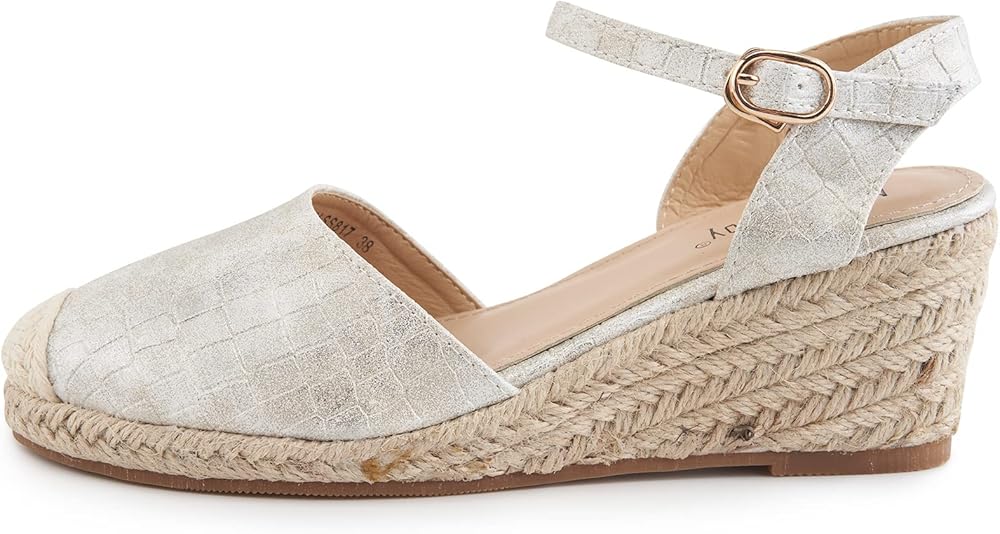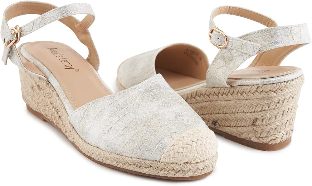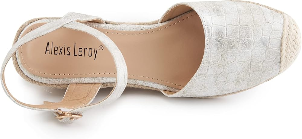 Alexis Leroy Women's Closed Toe Buckle Strap Slingback Espadrilles Wedge Sandals