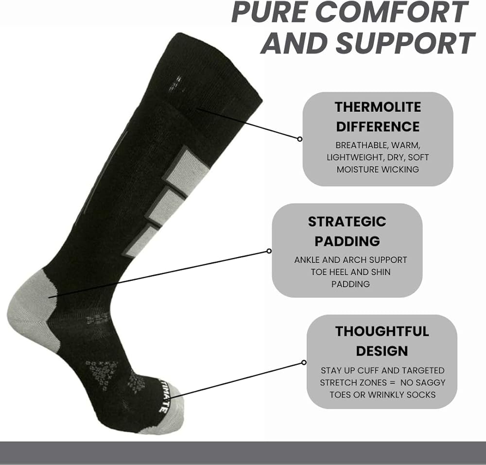 Our Thermolite Midweight Ski and Snowboard socks have 70% Thermolite. The perfect combination of warmth and durability.