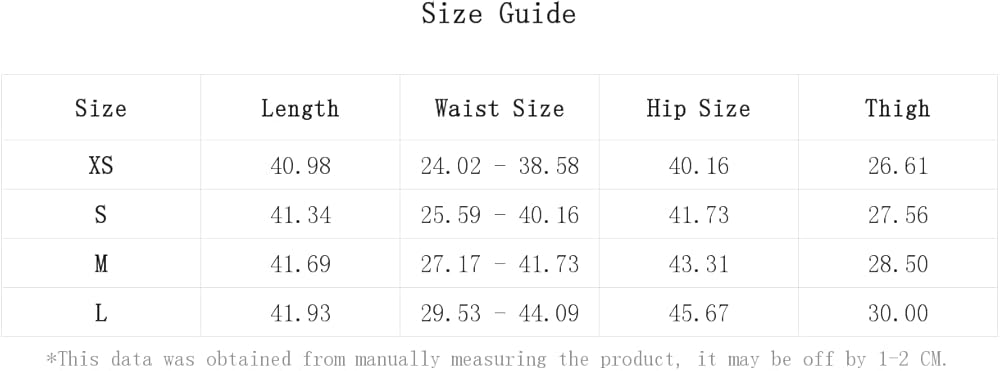 XS:Hip Size:40.2IN,Length:41.0IN,Thigh:26.6IN,Waist Size:24.0-38.6IN