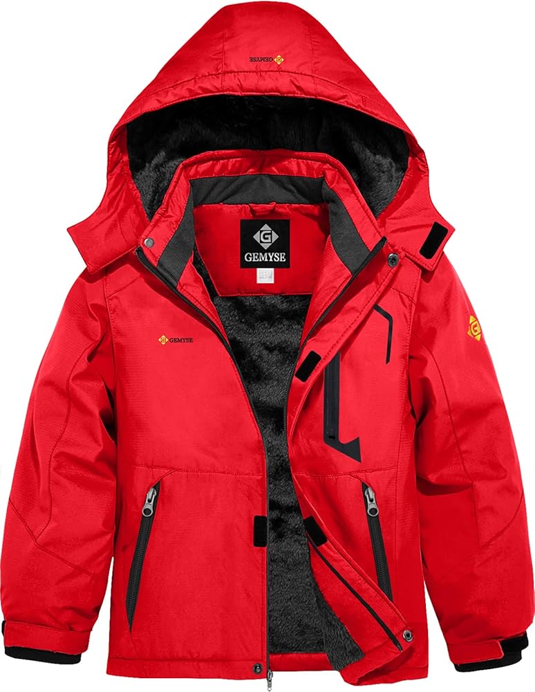 Warm & Durable Snow Jacket: The outer layer fabric is very durable & wear resistant, and the inner soft fleece lining is thick enough to keep kids warm and comfortable during the cold winter yet breathable and lightweight to wear. Also the stitching is reinforced,solid enough to wear for years.