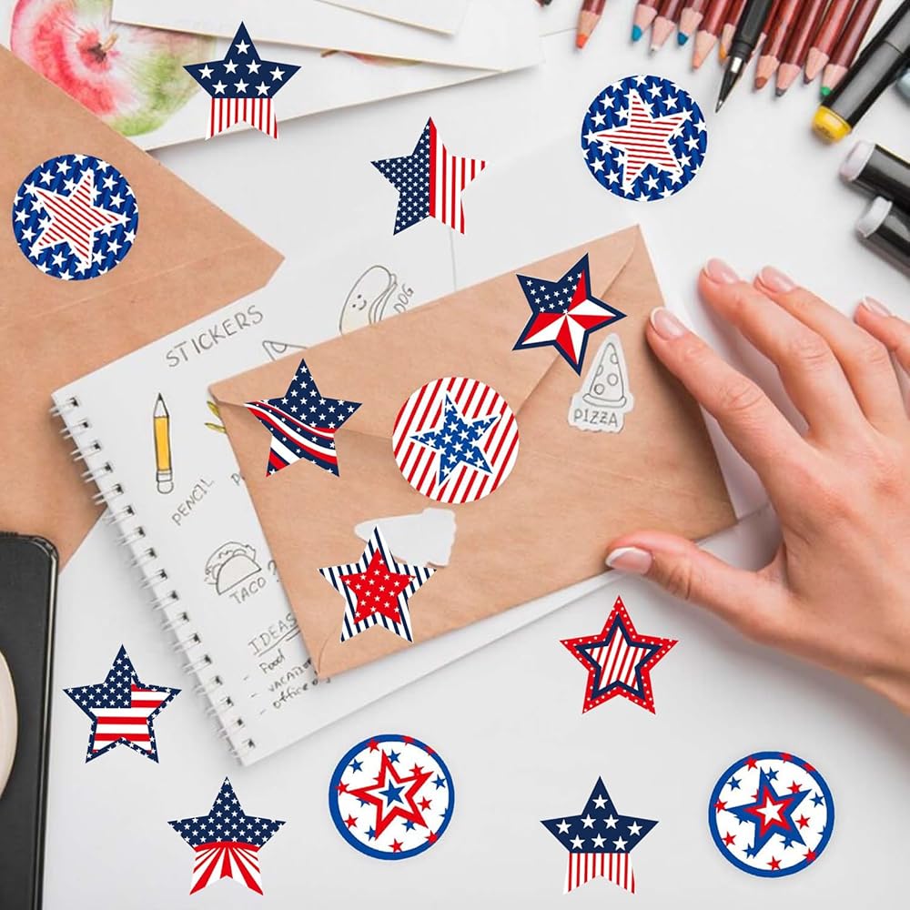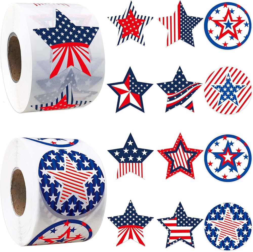 American Flag Stickers: you will receive 2 roll / 1000 pieces patriotic stickers with 10 patterns. the sufficient quantity will satisfy your daily decorating and replacing needs. Whether you're preparing for a large-scale event or simply adding a touch of patriotism to everyday items, our patriotic stickers ensures you have plenty of stickers to go around.