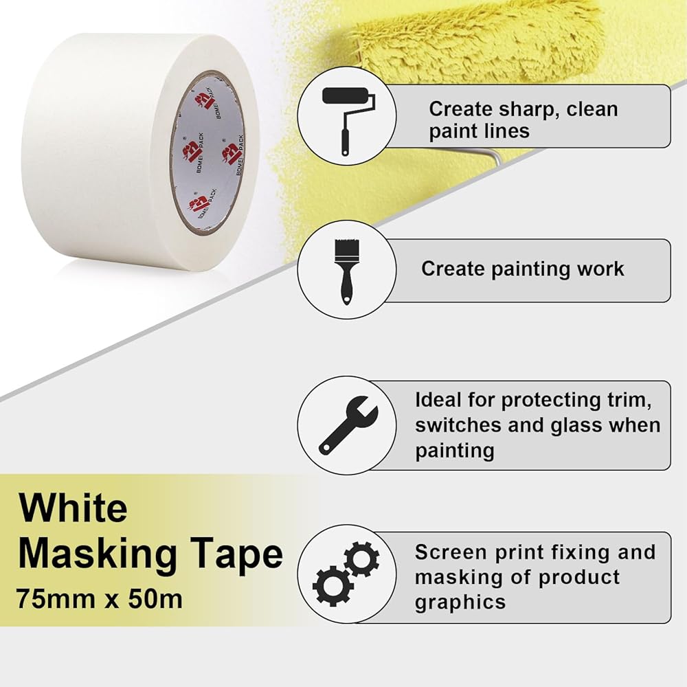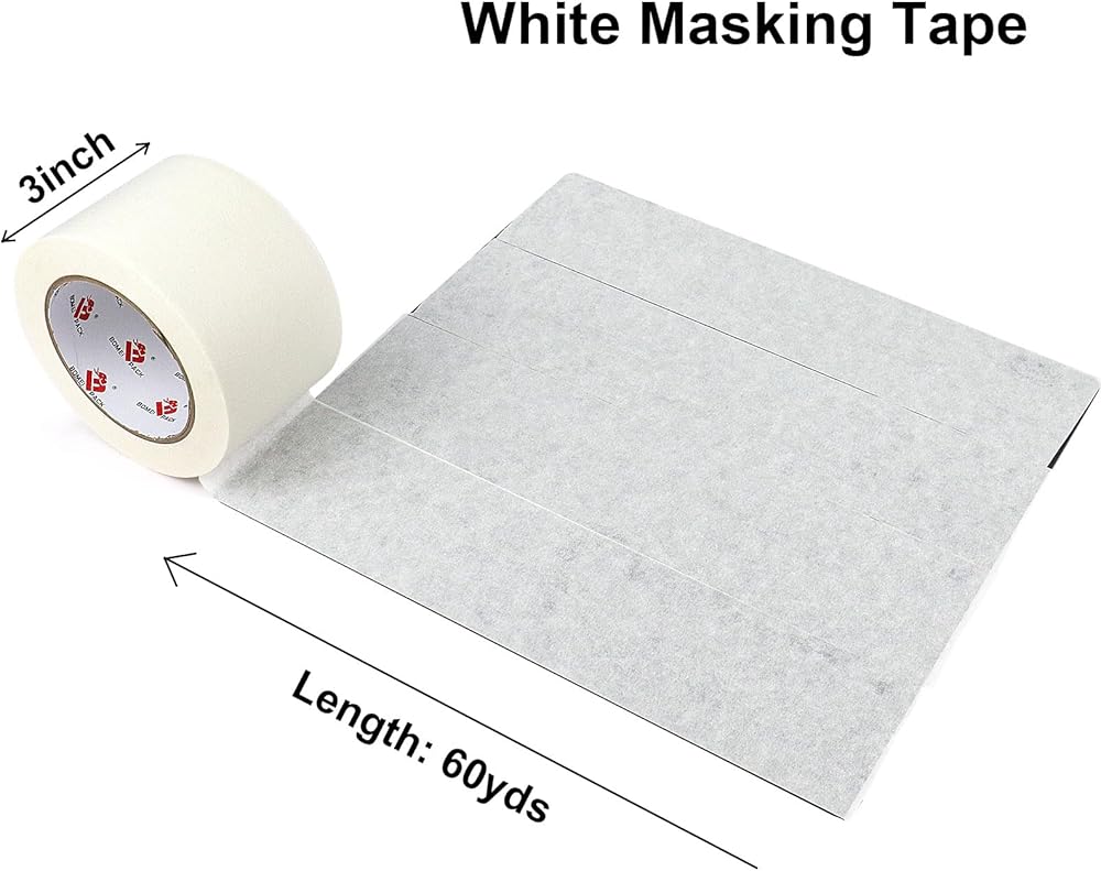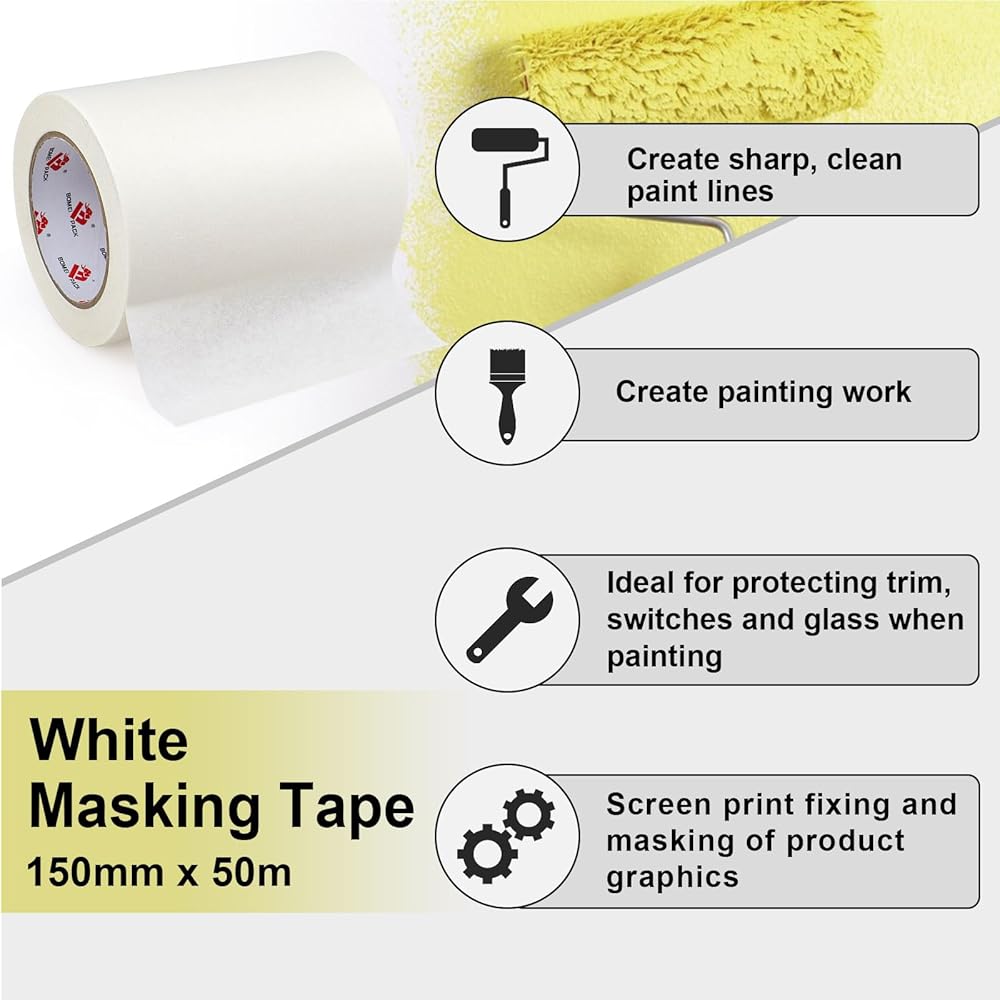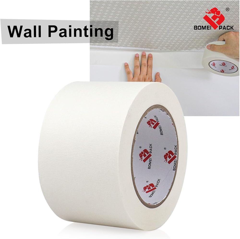 🌺 Clean and Sharp Paint Lines - BOMEI PACK Wide White Painter's Tape 55 yds Length x 6" Width will help you create a perfect edge in all types of painting, trimming, edging, masking and protective applications. Great balance of strength, flexibility, durability, and removability. Contains crepe paper backing to prevent paint bleed, yet removes cleanly without damage. You'll always get a perfect edge when you use it to create a border for painting or caulking jobs.
